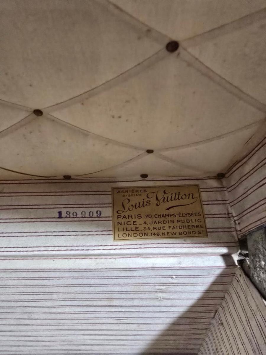 This early Louis Vuitton Monogram steamer trunk, bearing serial number 139209 (c. 1905-1908), represents a significant example from the transitional era of hand-stenciled canvas production, predating the 1914 Champs-Élysées flagship opening. The trunk's provenance indicators—including the 149 New Bond Street label without the later Paris address—confirm its Belle Époque origins during Georges Vuitton's aggressive international expansion. Recent auction results for comparable Monogram steamers range from $6,800 for condition-compromised examples to $15,000 for pieces with aristocratic provenance (Bonhams 2021), with standard examples achieving $10,710-$13,000 at Clars in 2023. The trunk's 'romantic' condition with original shipping labels and evidence of transatlantic travel adds collector appeal in today's market, which increasingly values authentic travel history over sterile restoration.