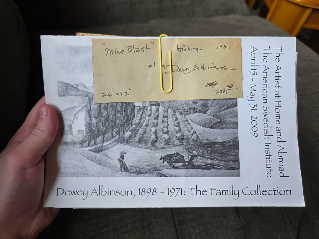 Ernest Dewey Albinson (1898–1971) was a premier figure in Minnesota art history, celebrated for infusing American Regionalism with a vigorous Modernist sensibility. Born in Minneapolis, Albinson trained at the Minneapolis School of Art and the Art Students League in New York before undertaking transformative studies in Paris under Cubist master André Lhote. This European training equipped him with a structural, geometric approach and expressionist brushwork that sharply distinguished him from purely academic realists of the 1930s. Upon returning to Minnesota, Albinson became a central administrative and creative force in the region, serving as Director of the St. Paul School of Art and later as the State Director of the Educational Division for the WPA Art Centers. Unlike many of his contemporaries who focused exclusively on agrarian tranquility, Albinson was captivated by the rugged 'industrial sublime' of Northern Minnesota. His documentation of the Iron Range during the Great Depression represents his most important contribution to the American Scene movement. Albinson’s historical significance is validated by strong institutional recognition. His 1934 masterpiece 'Northern Minnesota Mine'—painted shortly after 'Mine Blast'—is housed in the Smithsonian American Art Museum. His works are also held in the permanent collections of the Minneapolis Institute of Art (Mia), the San Diego Museum of Art, and the Minnesota Historical Society.