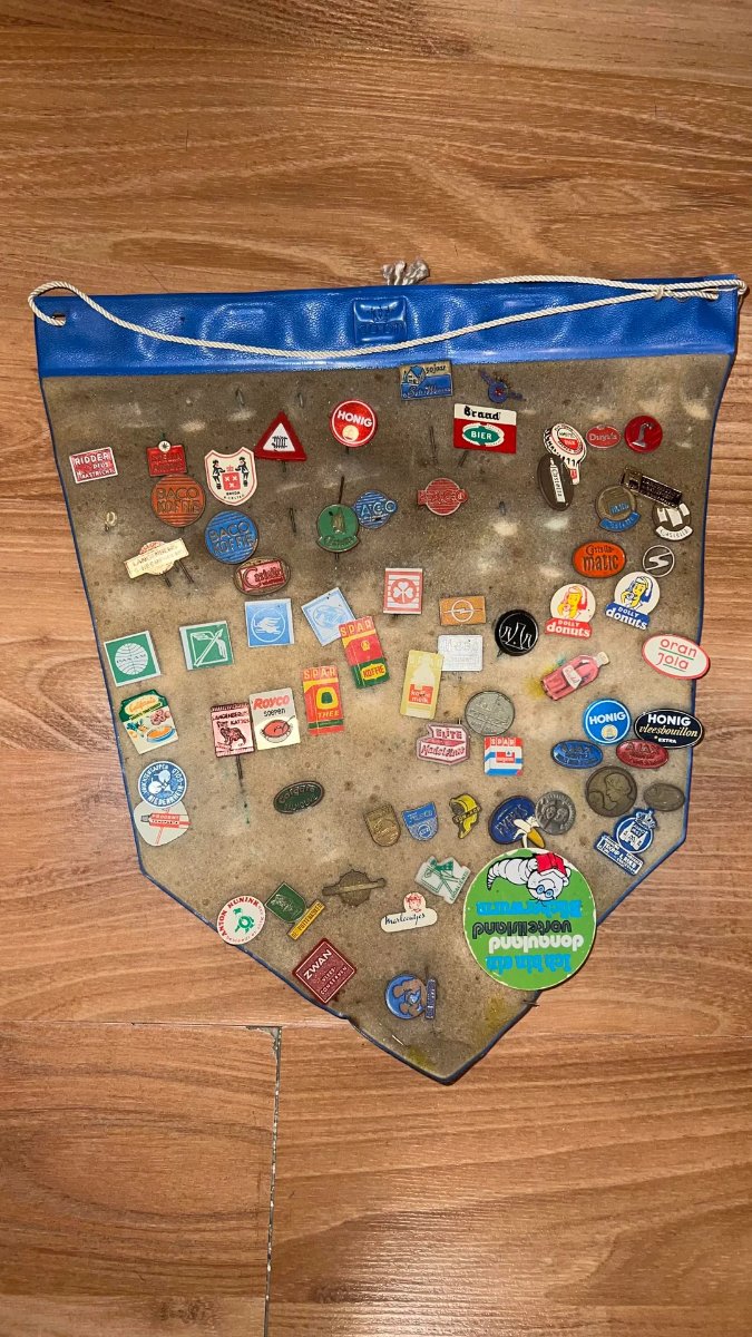 This period-correct mounted collection of Dutch 'speldjes' represents a complete cultural artifact of the 1960s Speldjeshype phenomenon, elevated beyond typical bulk lots by its curated presentation and inclusion of high-value anchor pieces. While the majority consists of common grocery brands (SPAR, Honig) valued at €0.10-€1.00 per pin, the presence of international aviation memorabilia (Pan Am) and potential pop culture items significantly enhances aggregate value. The foam pennant display format, exactly as a 1960s collector would have presented it, transforms ephemera into displayable wall art. Based on comparable mounted collections selling for €16-€35 and individual Pan Am pins achieving $15-$25, this instant collection merits an auction estimate of €75-150, with upside potential if Beatles or rare aviation variants are confirmed.