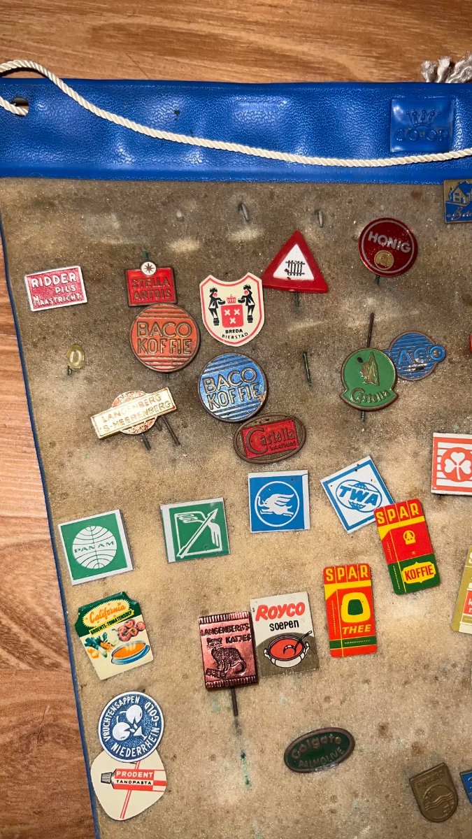 The true cultural significance lies not in individual makers but in the phenomenon they fed: the Speldjeshype of 1965-1966, when Dutch society transformed from traditional 'pillarization' to modern consumerism. Brands weaponized these tiny advertisements as 'premiums' with groceries and gasoline, creating a national trading culture where children negotiated complex swaps and rare airline pins commanded weeks of pocket money. This mounted collection preserves that moment when American brands like Pan Am and Colgate first penetrated Dutch households alongside local staples, documenting the Netherlands' post-war economic miracle in miniature.