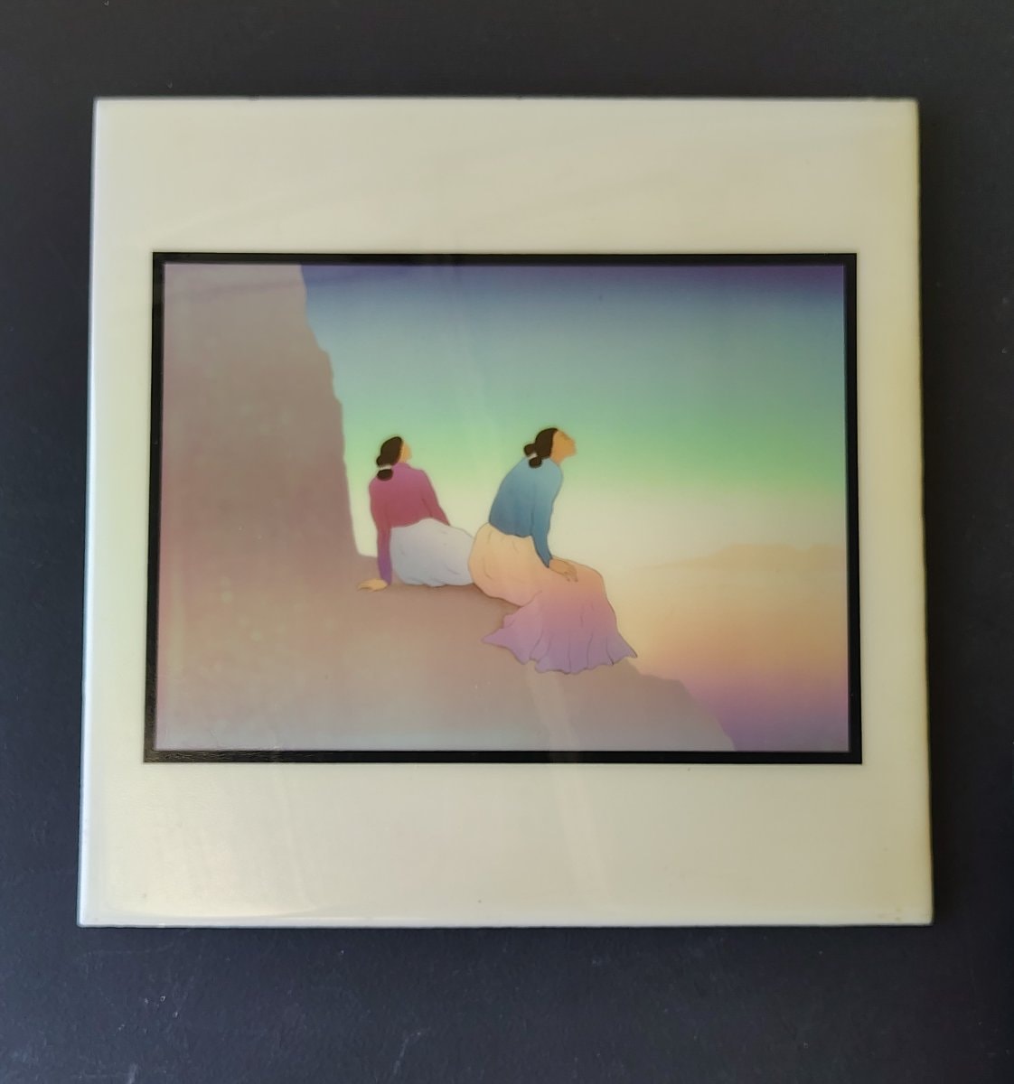 This high-gloss decorative tile features the unmistakable fluid lines and soft, desert-hued gradients of Navajo artist R.C. Gorman.