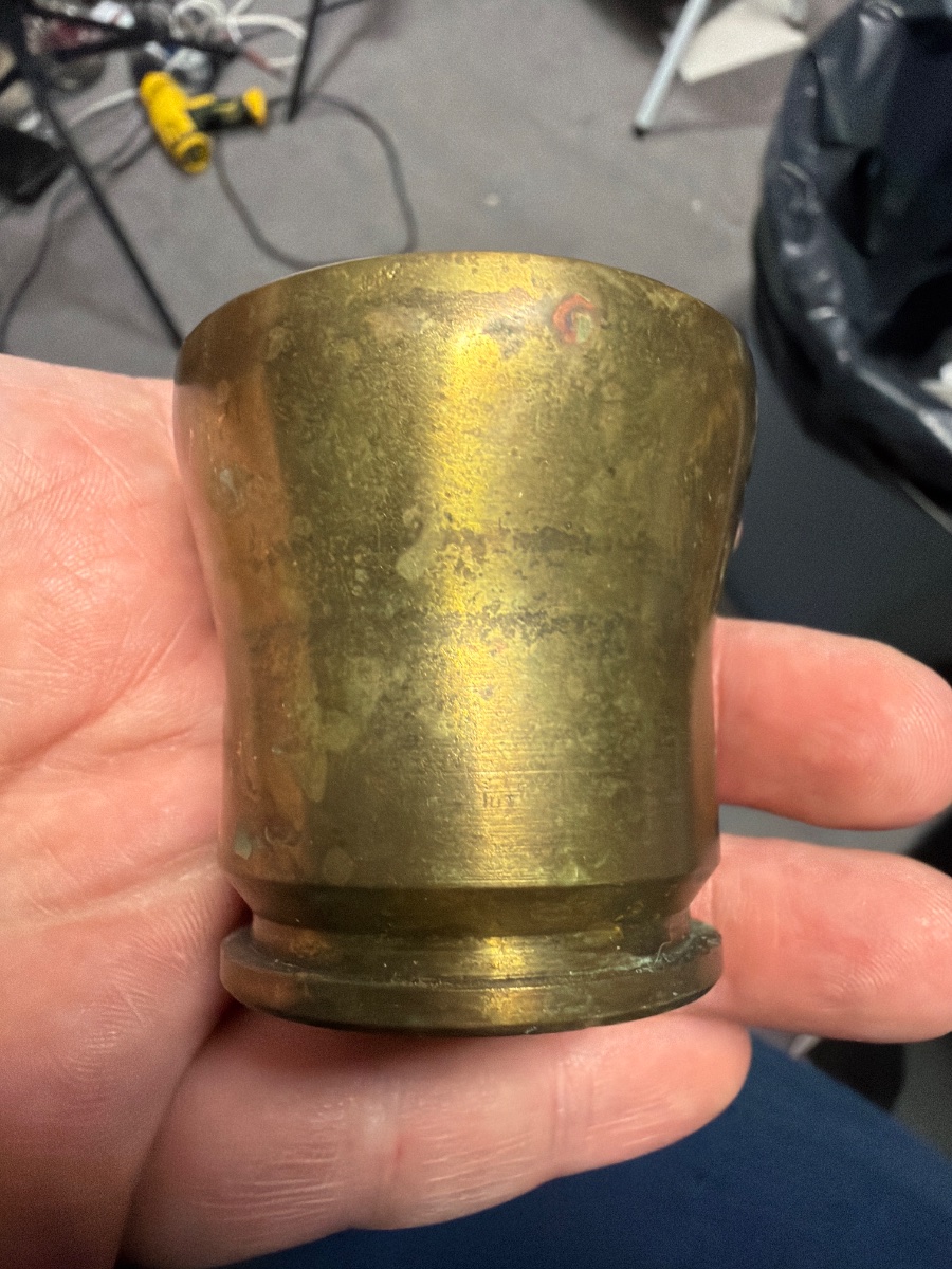 In May 1917, as the world was locked in the brutal stalemate of the Great War, this brass casing was manufactured and likely fired from a German field gun.