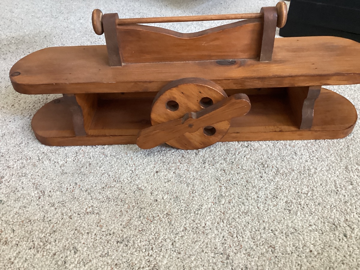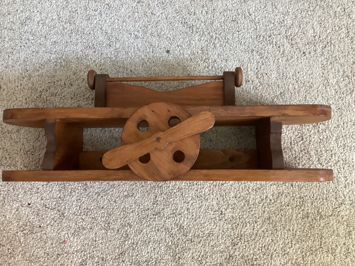 This is a whimsical piece of 'Country Craft' folk art, designed as a functional wall shelf in the silhouette of a vintage biplane.