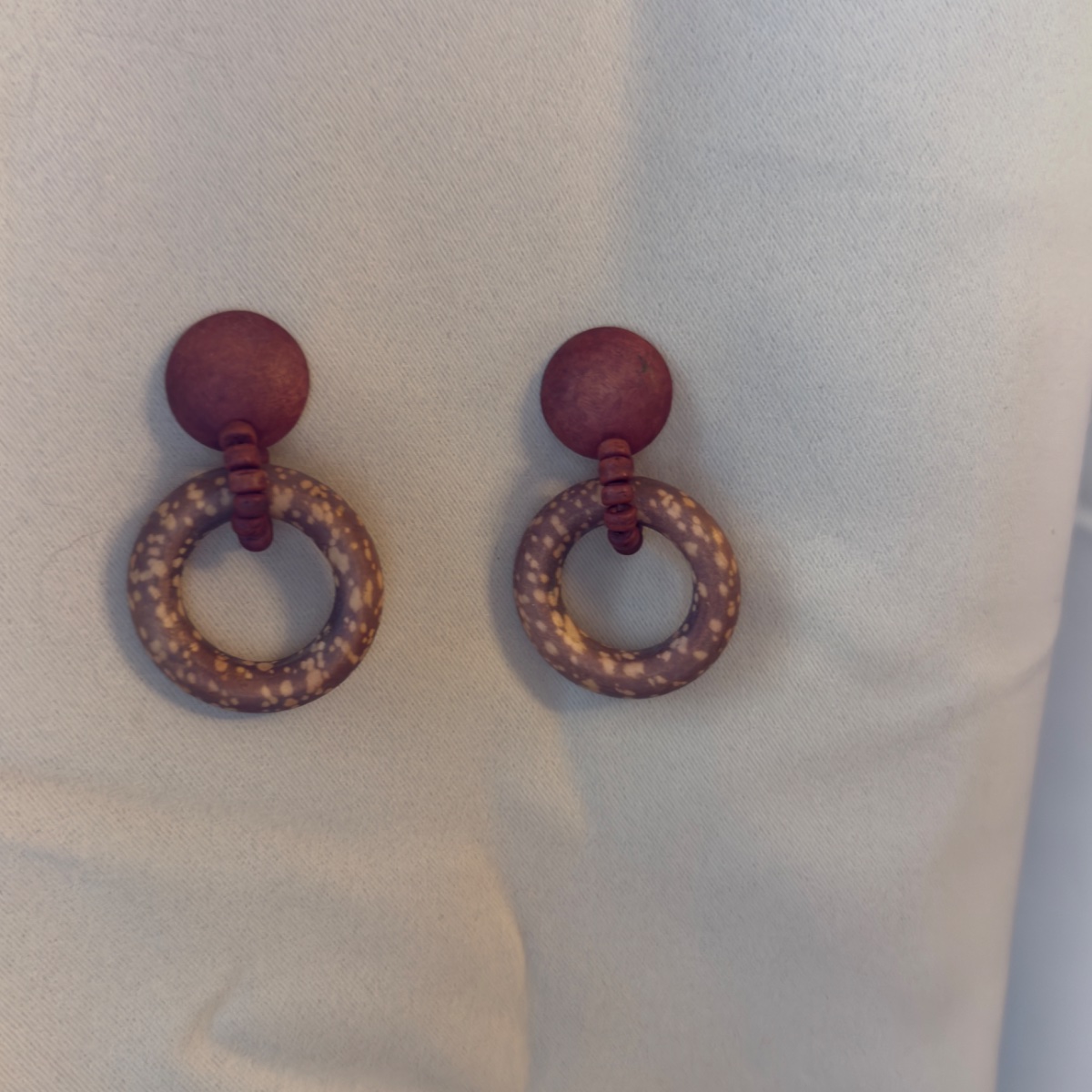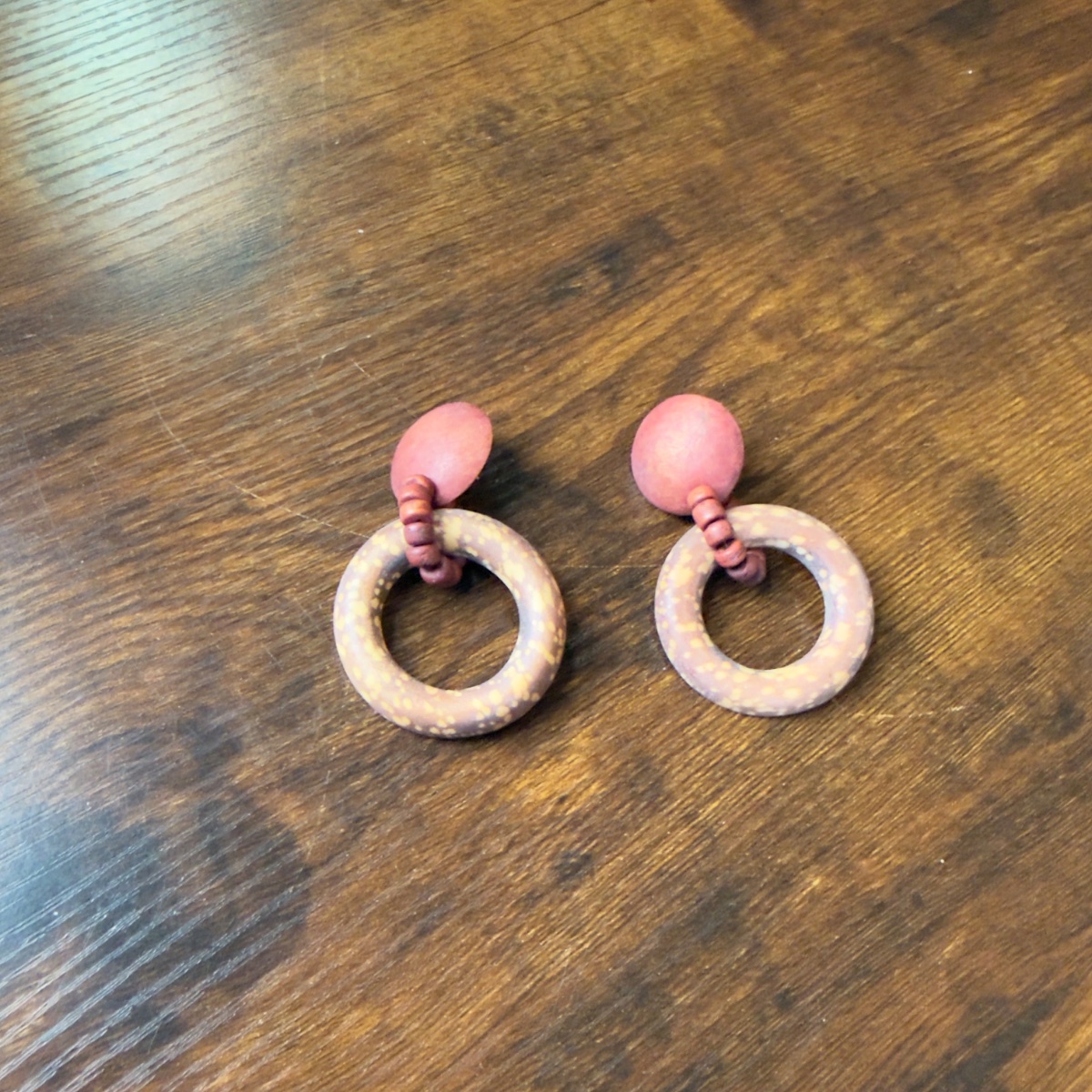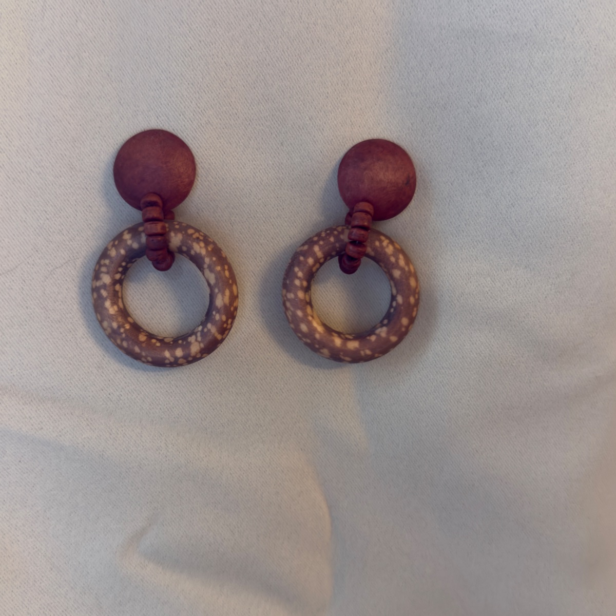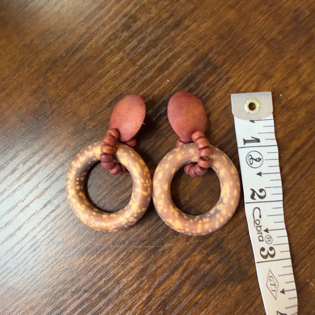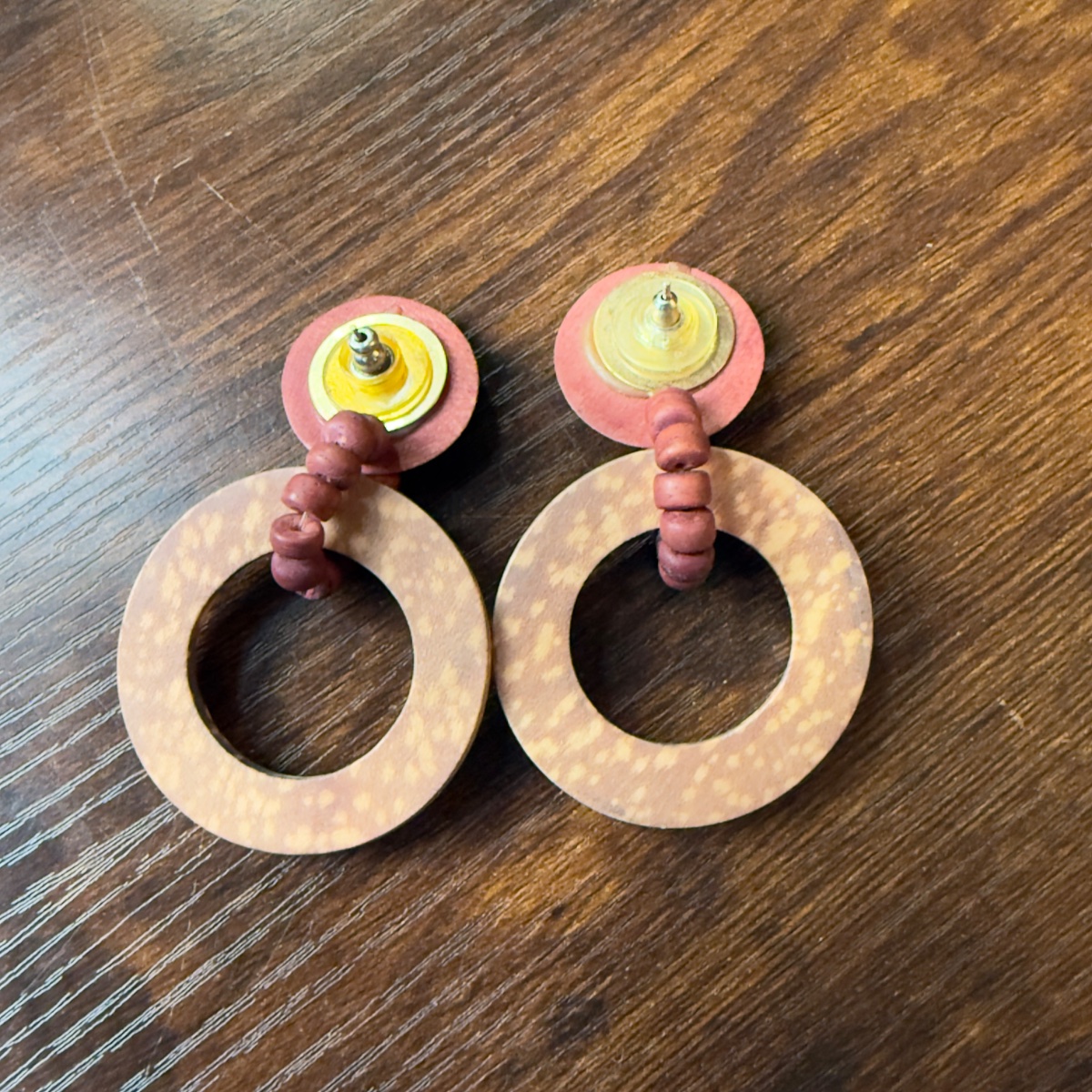 The wood appears well-preserved with no significant cracking or fading. Unsigned vintage wooden jewelry from this era is highly collectible for its 'look' rather than a specific brand name.