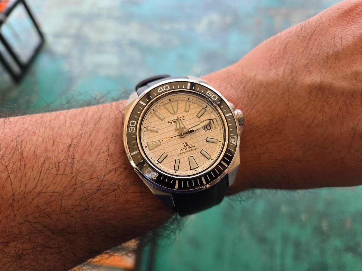 This is a premium evolution of one of Seiko's most iconic diver designs, nicknamed the 'Samurai' for its sharp, angular lugs that resemble the sword-slashes of a katana.