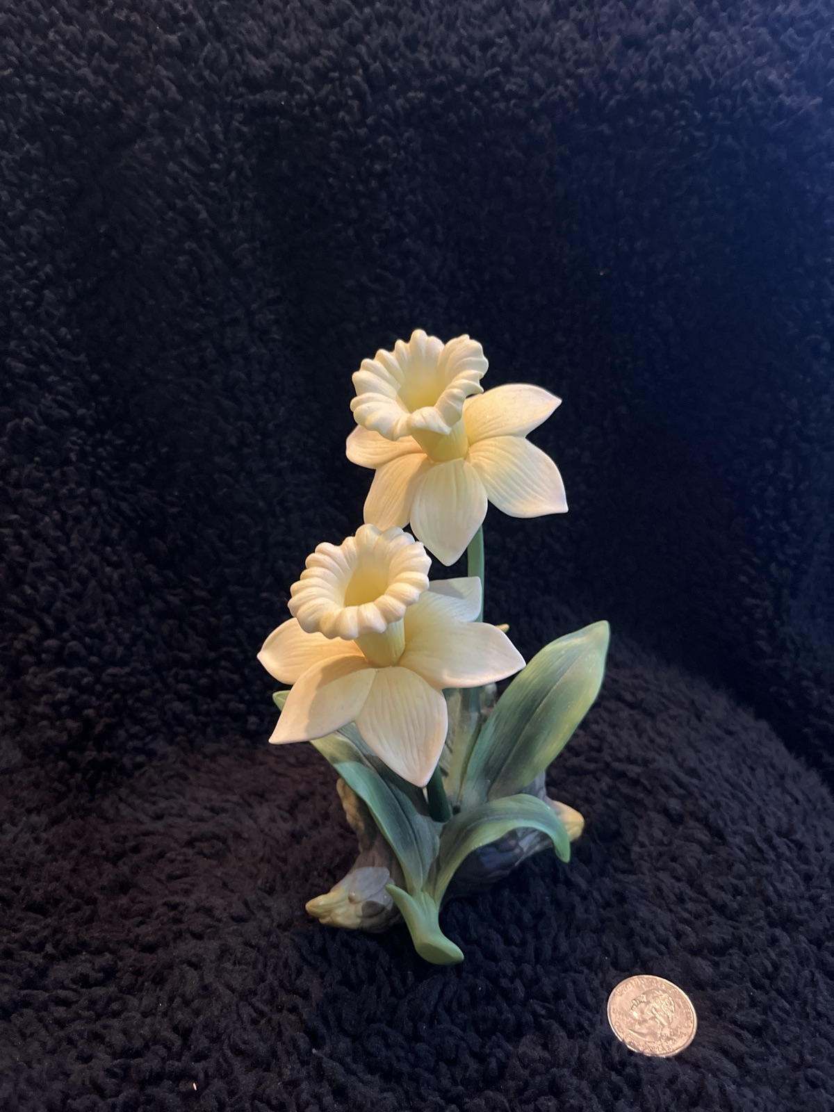 This is a fine bisque porcelain botanical sculpture, capturing the delicate architecture of the daffodil with startling realism.
