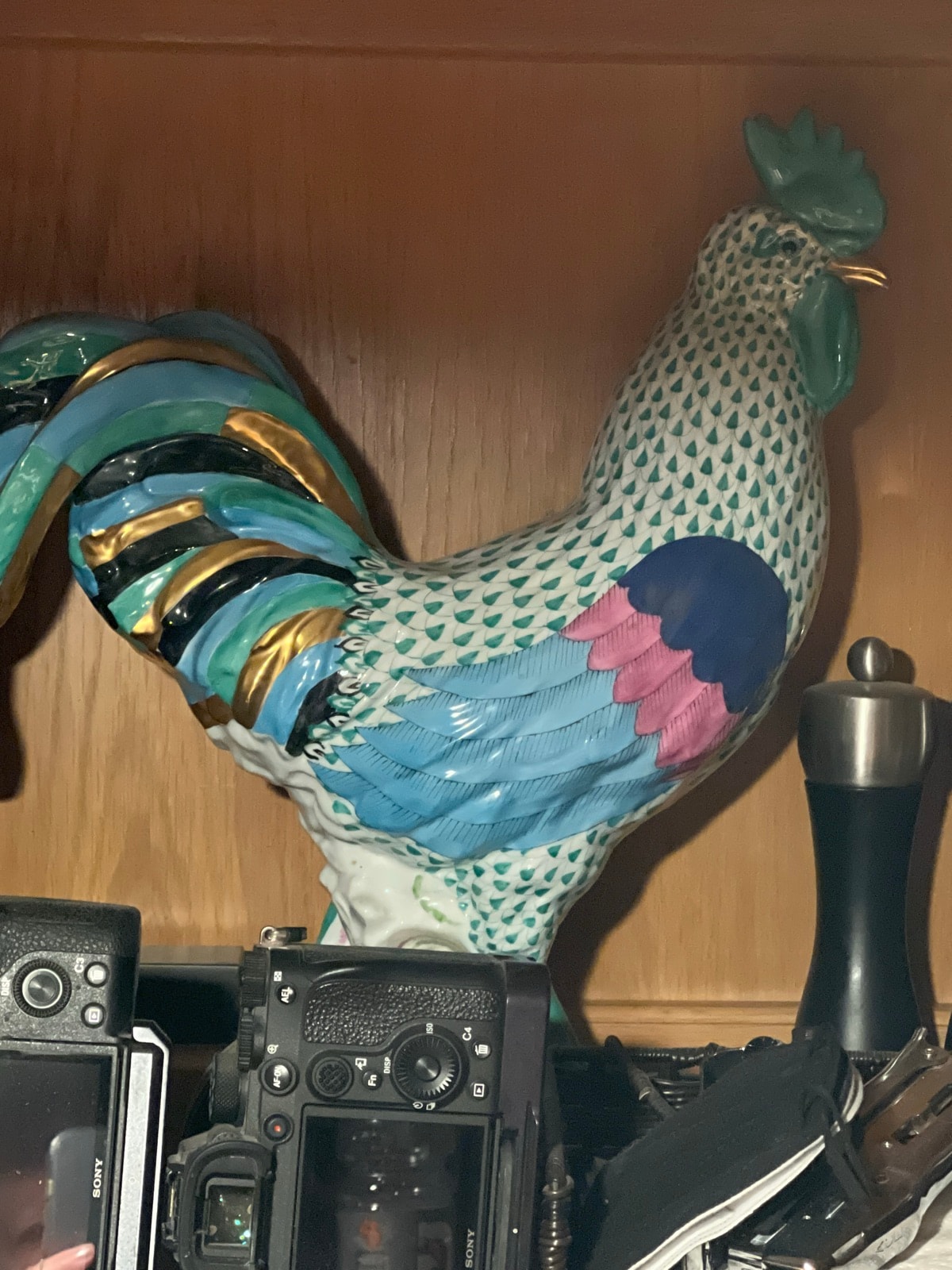A magnificent example of Hungarian luxury porcelain, this large-scale rooster features the world-famous 'fishnet' hand-painted pattern.