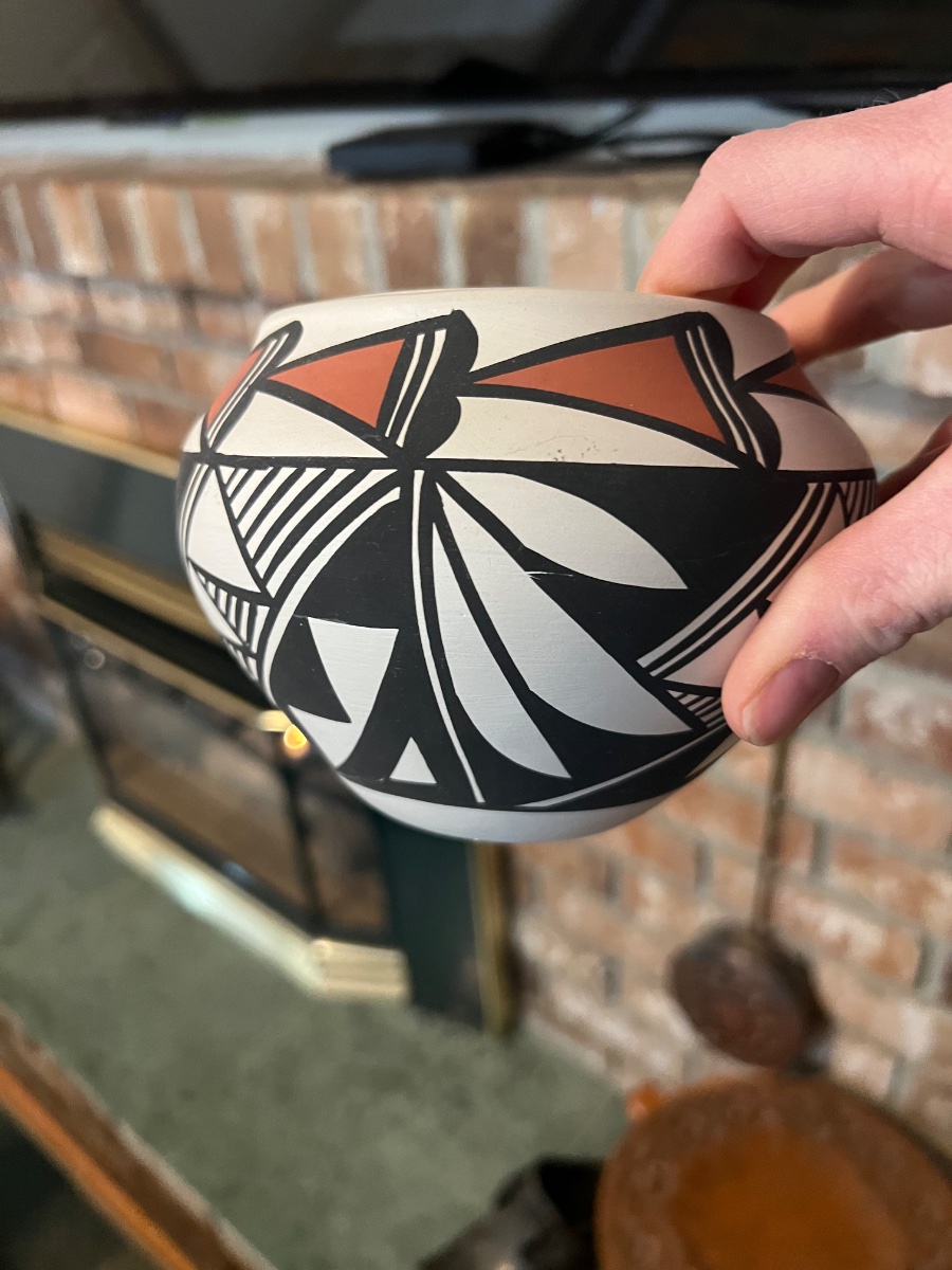 The Lee family is part of a long lineage of Acoma potters who have passed down these intricate geometric patterns through generations.
