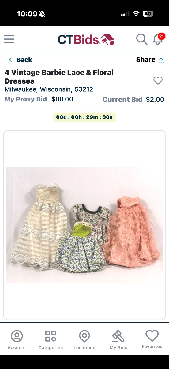 The garments appear well-preserved, though the white lace shows some slight yellowing consistent with age. Individual vintage Barbie outfits in good condition typically sell for $20-$40 each; however, the lack of original accessories like shoes, veils, or gloves keeps this…
