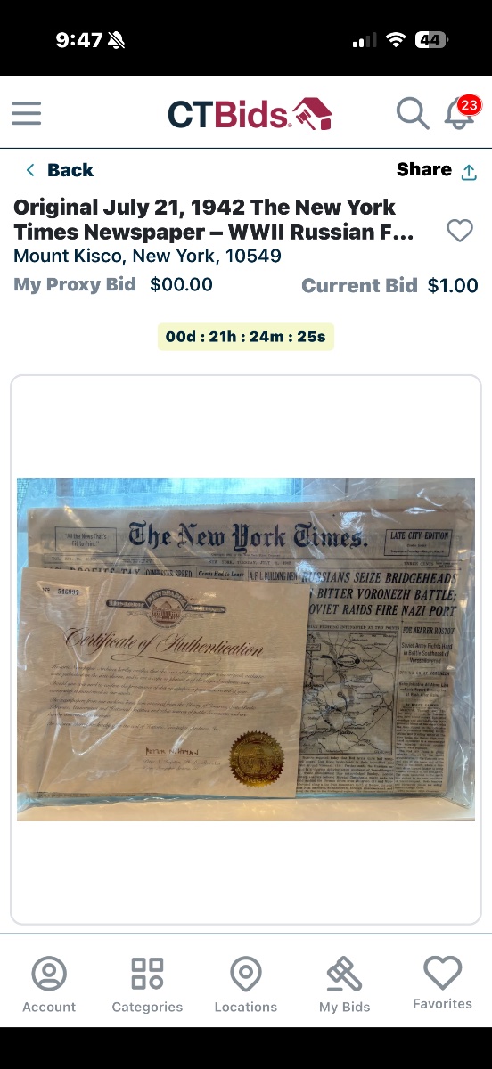 A complete, original 'Late City Edition' of the New York Times from the height of World War II.
