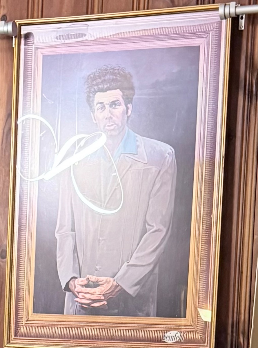 This is a classic pop-culture lithograph depicting Michael Richards as Cosmo Kramer in a parody of a formal oil portrait.
