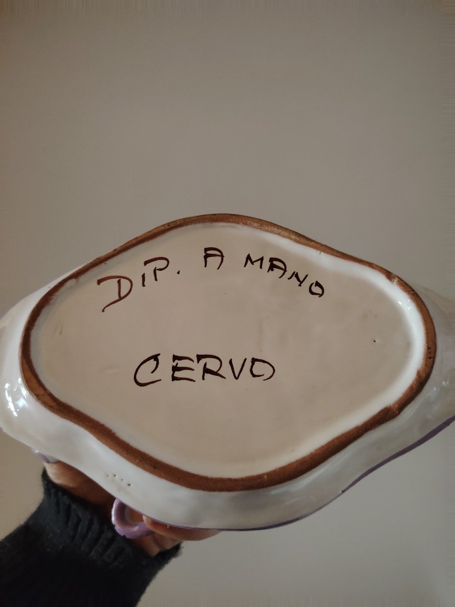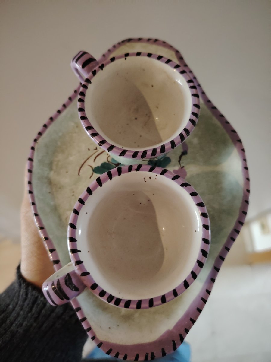 The set shows visible crazing and some minor staining to the interior of the cups, which is very common for Italian earthenware of this age. Value is based on the set's appeal as a decorative 'cottagecore' or vintage kitchen item.