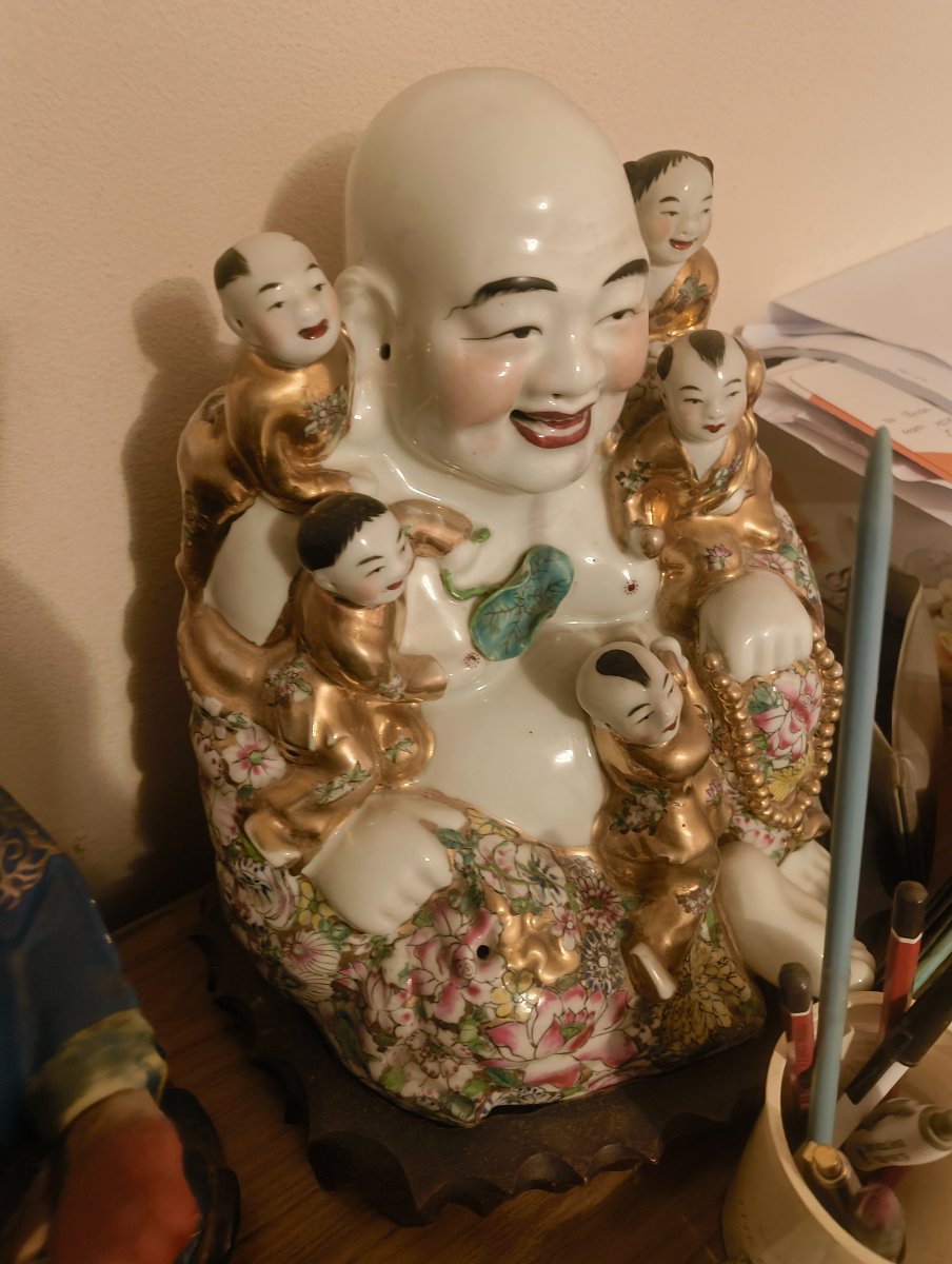 Budai was an eccentric 10th-century monk who wandered China with a sack full of candy and toys for children, eventually becoming a symbol of contentment and abundance.