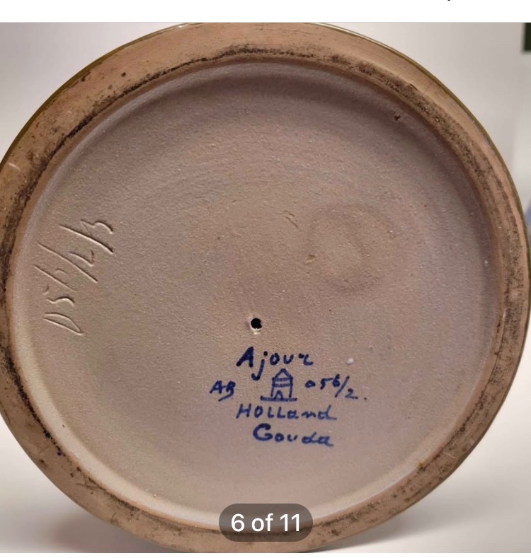 Plateelbakkerij Zuid-Holland (PZH), founded in 1898, was the most influential factory in the Gouda region, recognizable by its iconic windmill mark seen on the base.