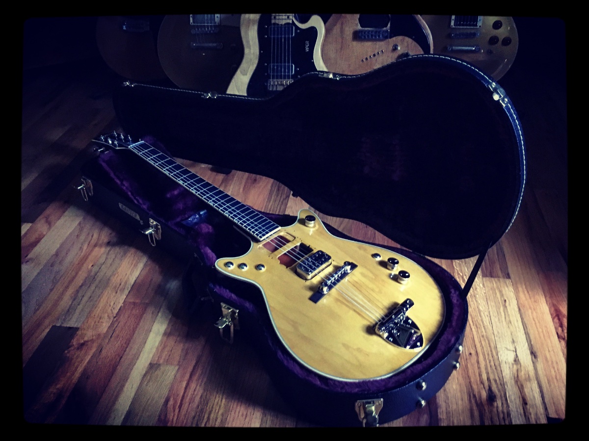 The instrument appears to be in excellent condition with no visible 'buckle rash' or significant dings on the top. Value is driven by the specific model iteration and the current high demand for Japanese-made 'Professional Collection' Gretsches.