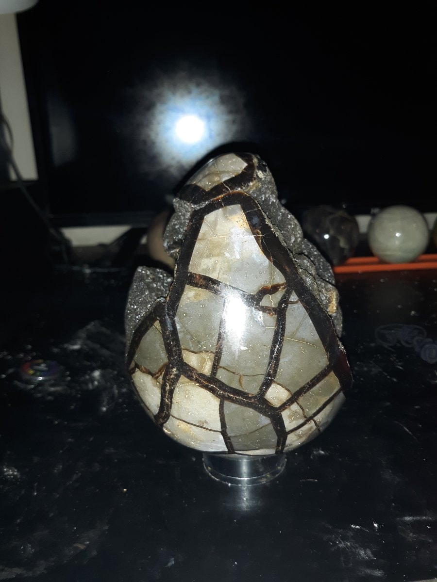 The polish appears well-executed with a high shine. There are natural internal fractures visible, which are inherent to the drying process of the original mud ball millions of years ago and do not typically detract from the value unless they threaten the structural integrity.
