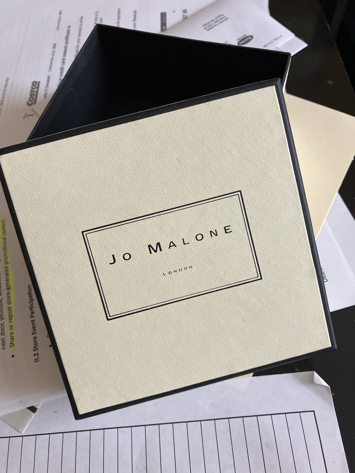 This is the iconic cream-and-black presentation box that has become a global shorthand for British luxury and olfactory elegance.