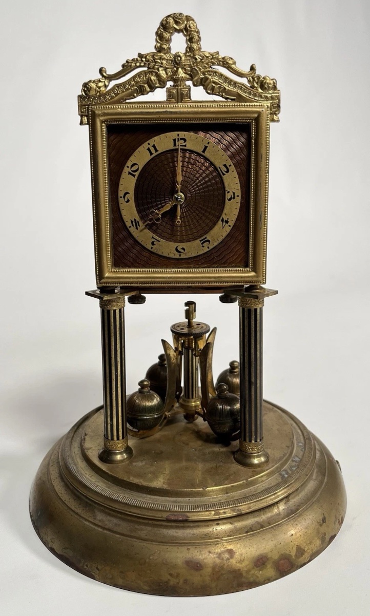 A sophisticated 'Anniversary Clock' featuring a torsion pendulum designed to run for a full year on a single winding.