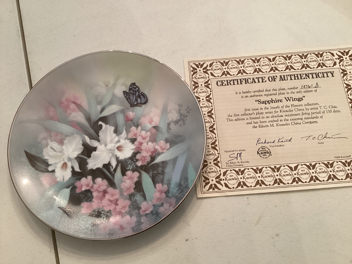 In 1990, the Edwin M. Knowles China Company released this piece as the first issue in the 'Jewels of the Flowers' series, aiming to bring gallery-quality botanical art into the American home. The artist, T.C.