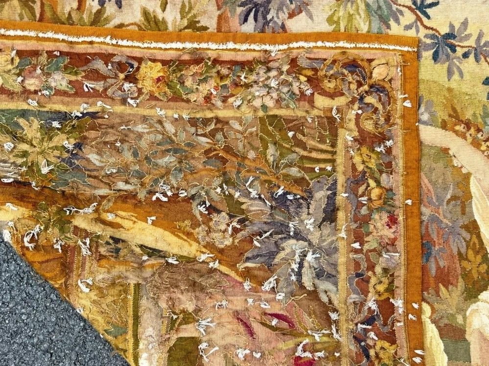 The tapestry appears to be in excellent vintage condition with remarkably well-preserved colors. Value for mid-century Flemish revivals is driven by size, the complexity of the figurative scene, and the presence of silk highlights.