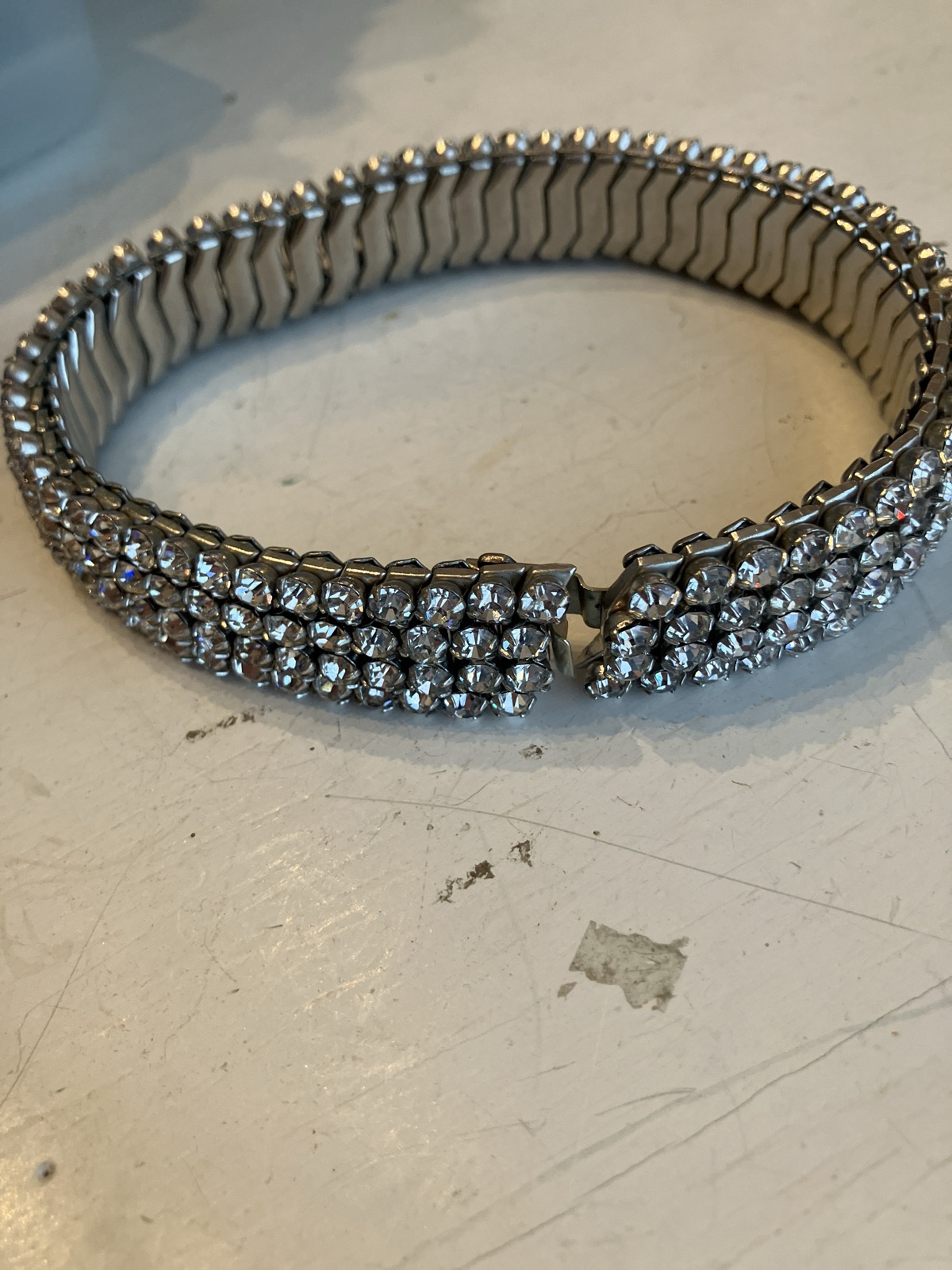 The stones appear remarkably clear and bright in the photos, suggesting they have been kept away from moisture which causes 'foiling' damage. Value in the vintage costume market is driven primarily by the 'fire' of the stones and the tightness of the expansion links.