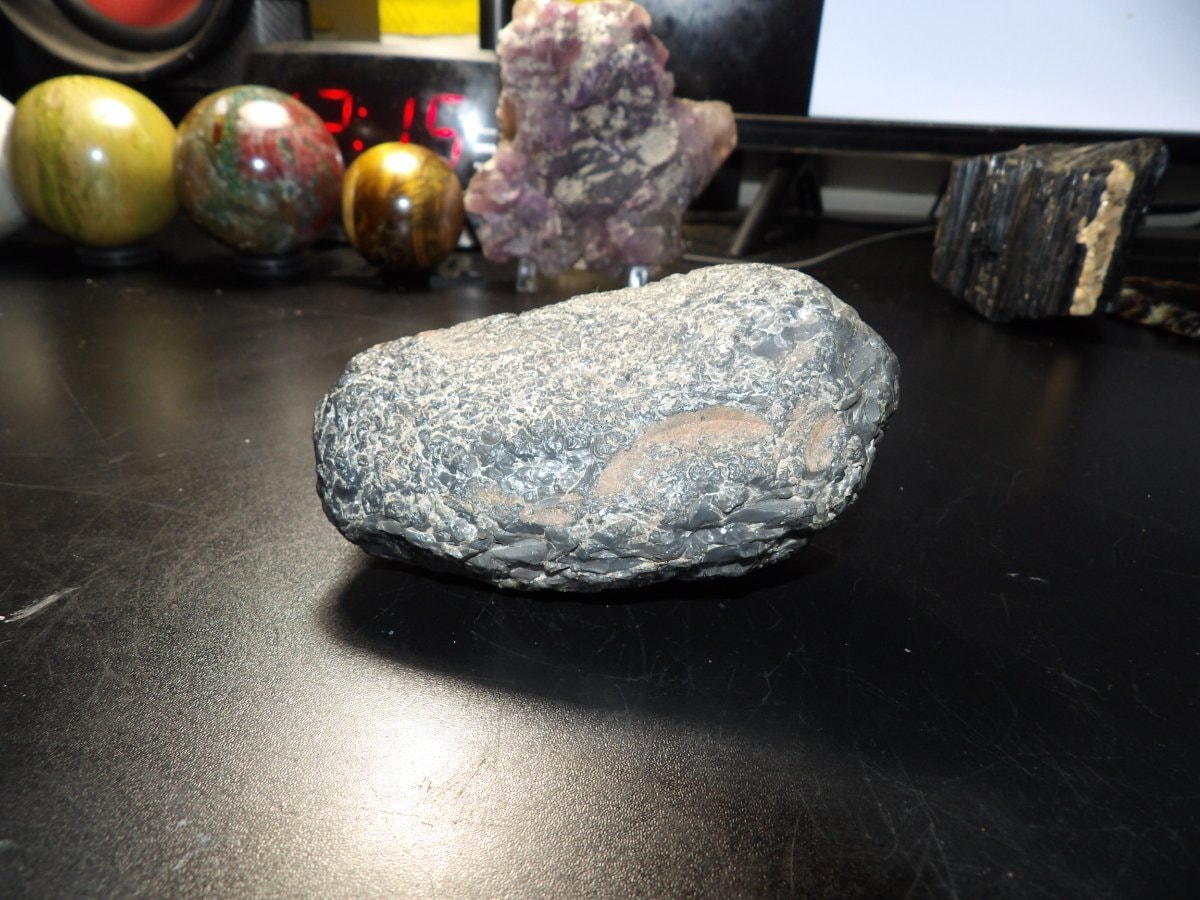The specimen is in a natural, raw state with a clear cross-section showing the internal banding. The exterior shows typical environmental weathering consistent with a field-collected piece. Natural state is preferred by many collectors over polished versions.