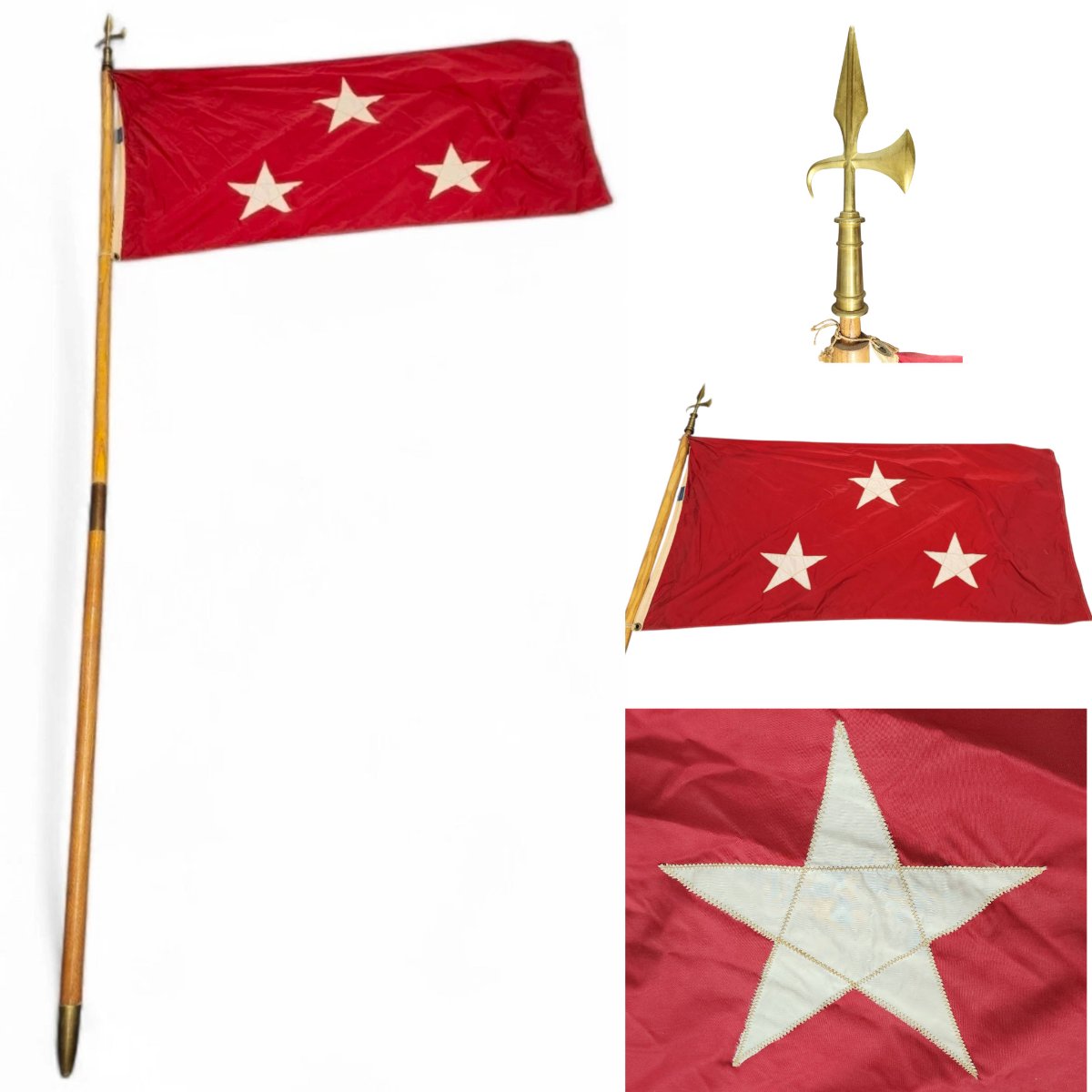 A rare and historically significant personal command flag featuring three white stars on a scarlet field, representing the rank of Lieutenant General.