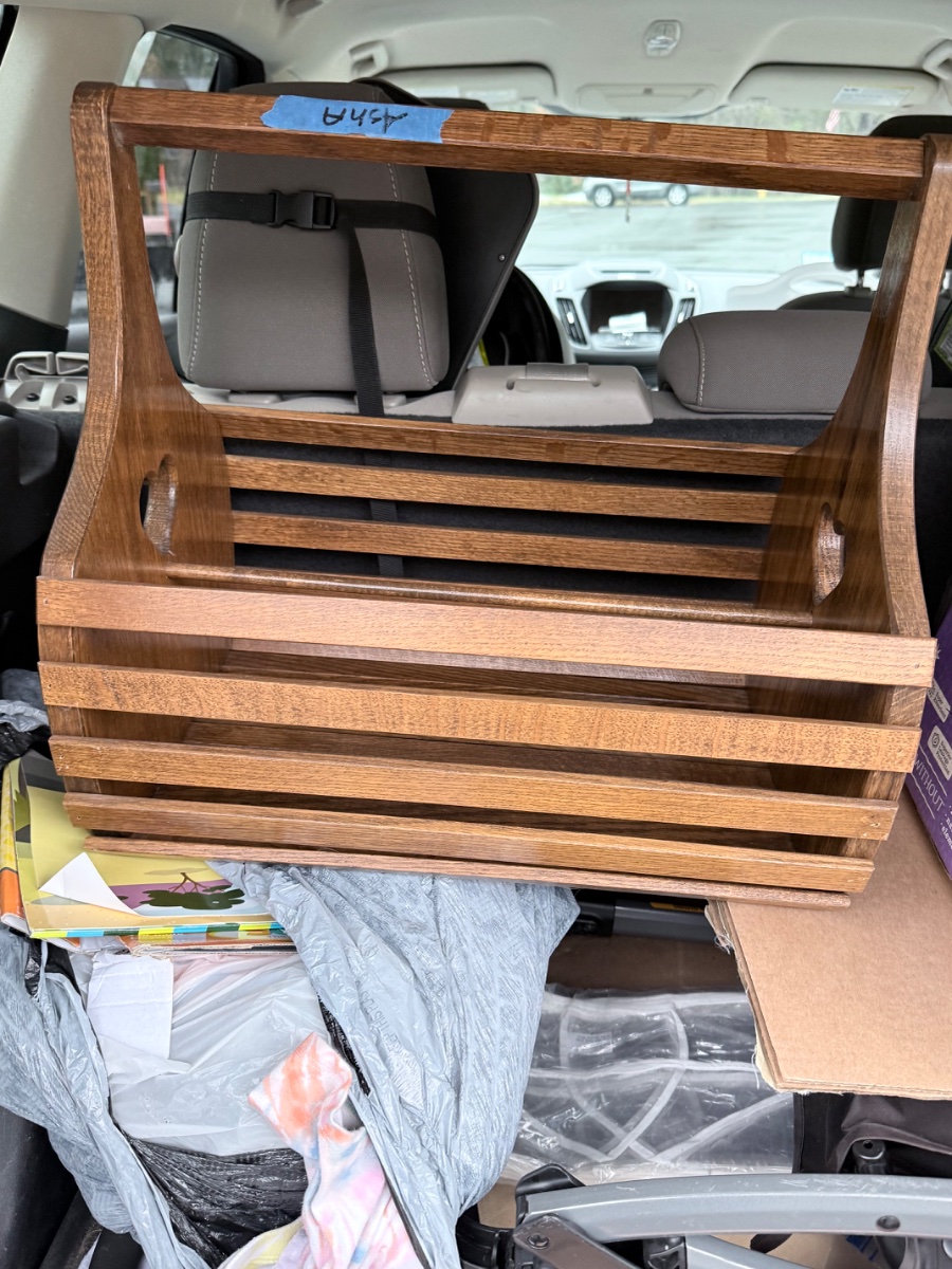 A charming and functional piece of Americana-inspired home decor, this slatted caddy features the iconic heart-shaped cutouts that defined the late 20th-century 'Country' aesthetic.