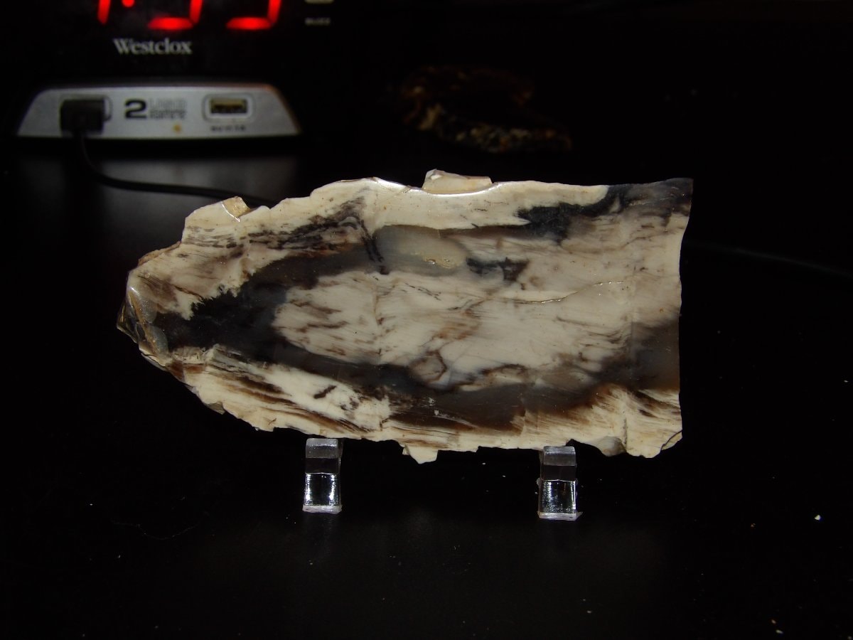 This is a longitudinal section of fossilized wood that has undergone permineralization, where every organic cell was replaced by silica over millions of years.