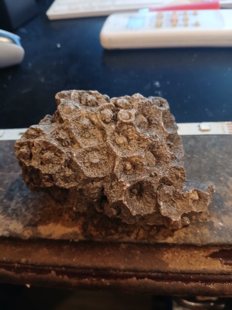 This is a fossilized colony of rugose coral, an extinct order of coral that served as the primary reef-builders of the Paleozoic era.