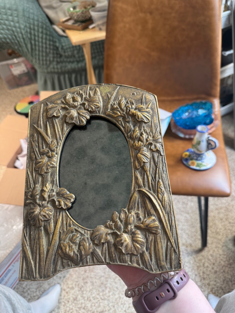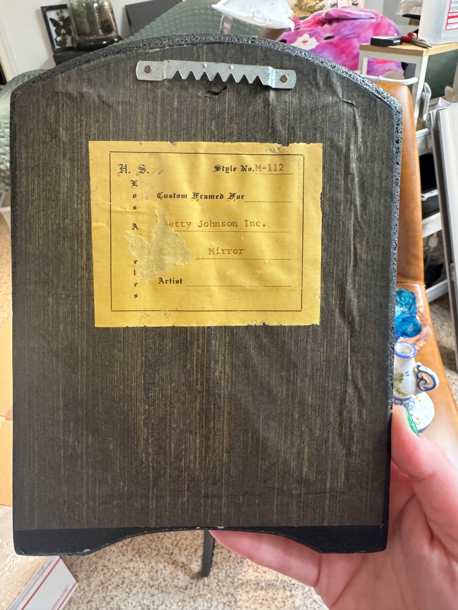 The frame appears to be in excellent vintage condition with the metallic finish showing appropriate age-related patina. Value is driven by the current high demand for 'Grandmillennial' and Hollywood Regency decor. The specific provenance of Betty Johnson Inc.