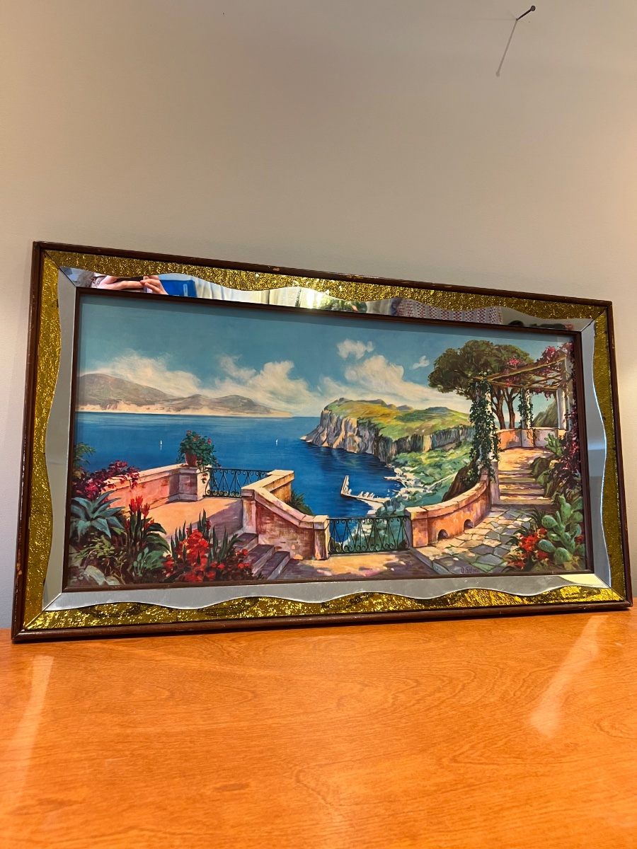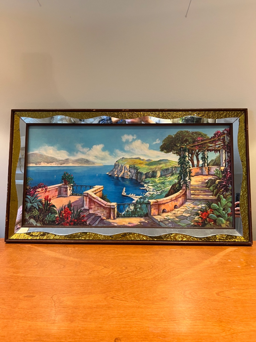 The signature appears to be 'O. Salmin,' a name associated with high-quality commercial decorative art of the mid-20th century. During this era, studios like Turner Mfg. Co. or Illinois Moulding Co.
