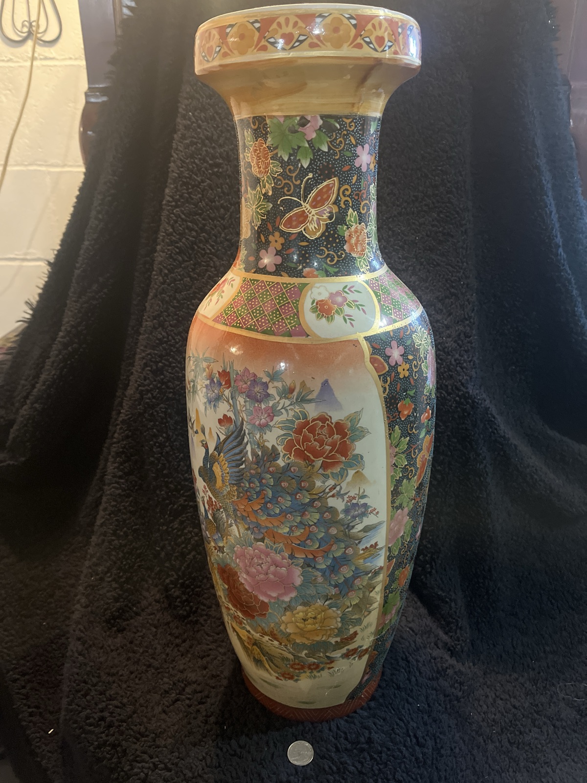 The vase appears to be in good decorative condition with vibrant colors. Value for these large-scale export pieces is driven primarily by their decorative appeal and size.