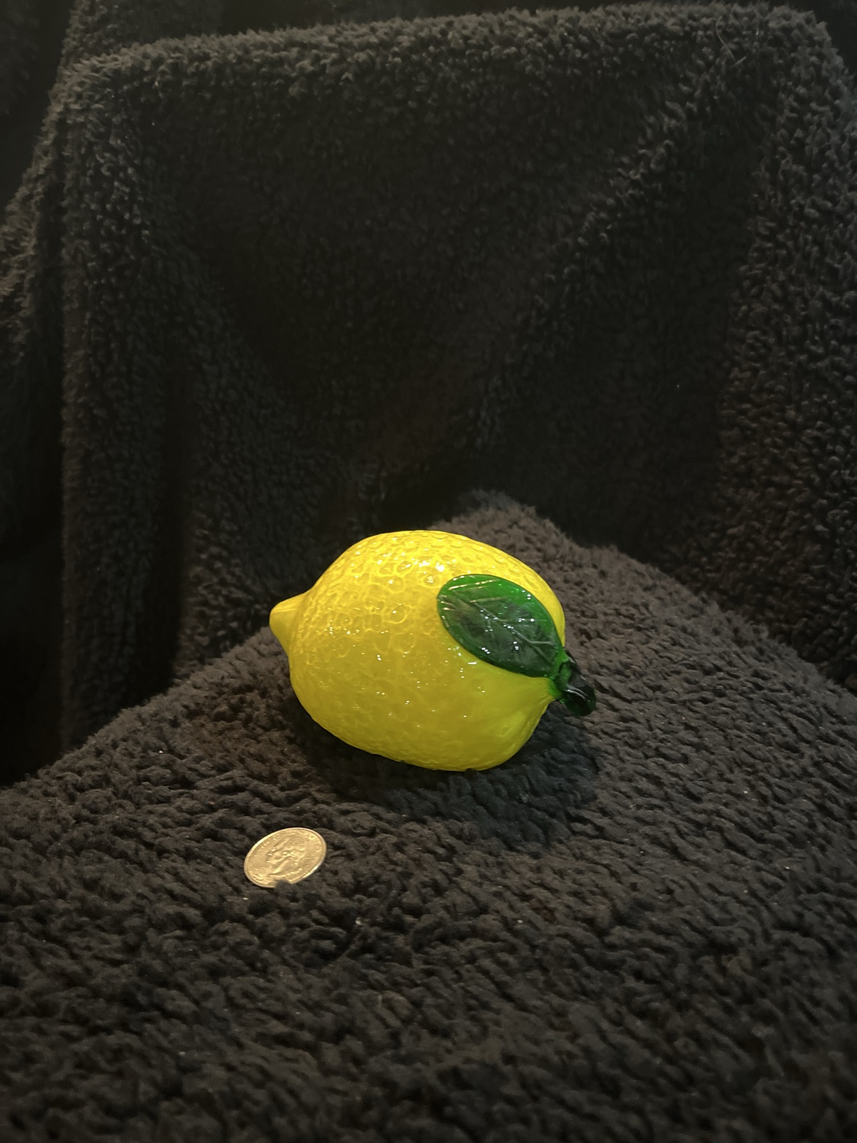 A vibrant, hand-blown glass lemon featuring a textured surface designed to mimic the 'zest' of real citrus.