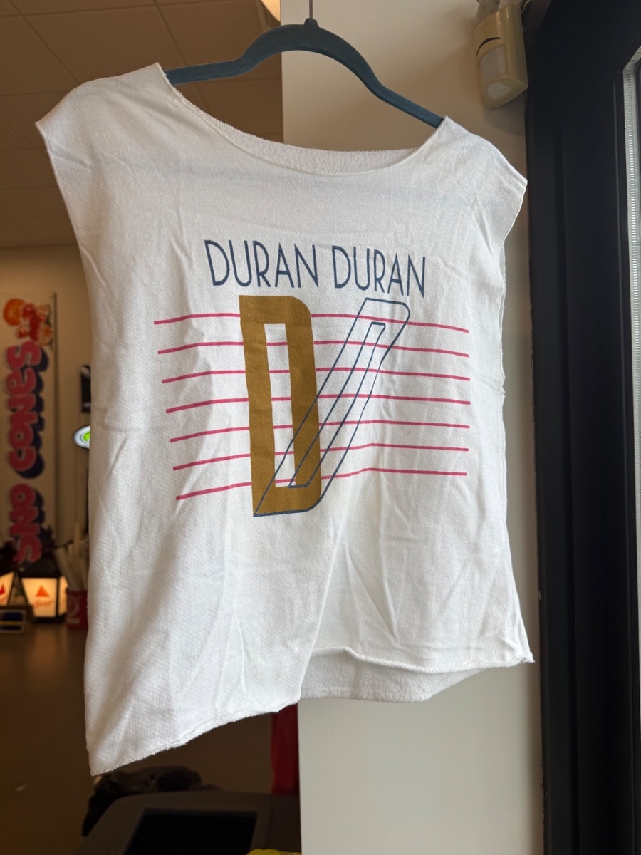 By 1984, Duran Duran was the biggest band on the planet, sparking a level of fan hysteria that the press dubbed 'Durannie-mania.' This specific graphic design accompanied their massive world tour following the release of the album 'Seven and the Ragged Tiger.'