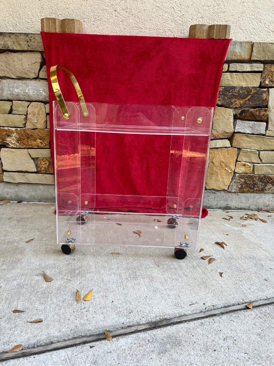 The acrylic appears to have excellent clarity with no major yellowing or cloudiness visible. Value is driven by the current high demand for vintage Lucite in interior design.