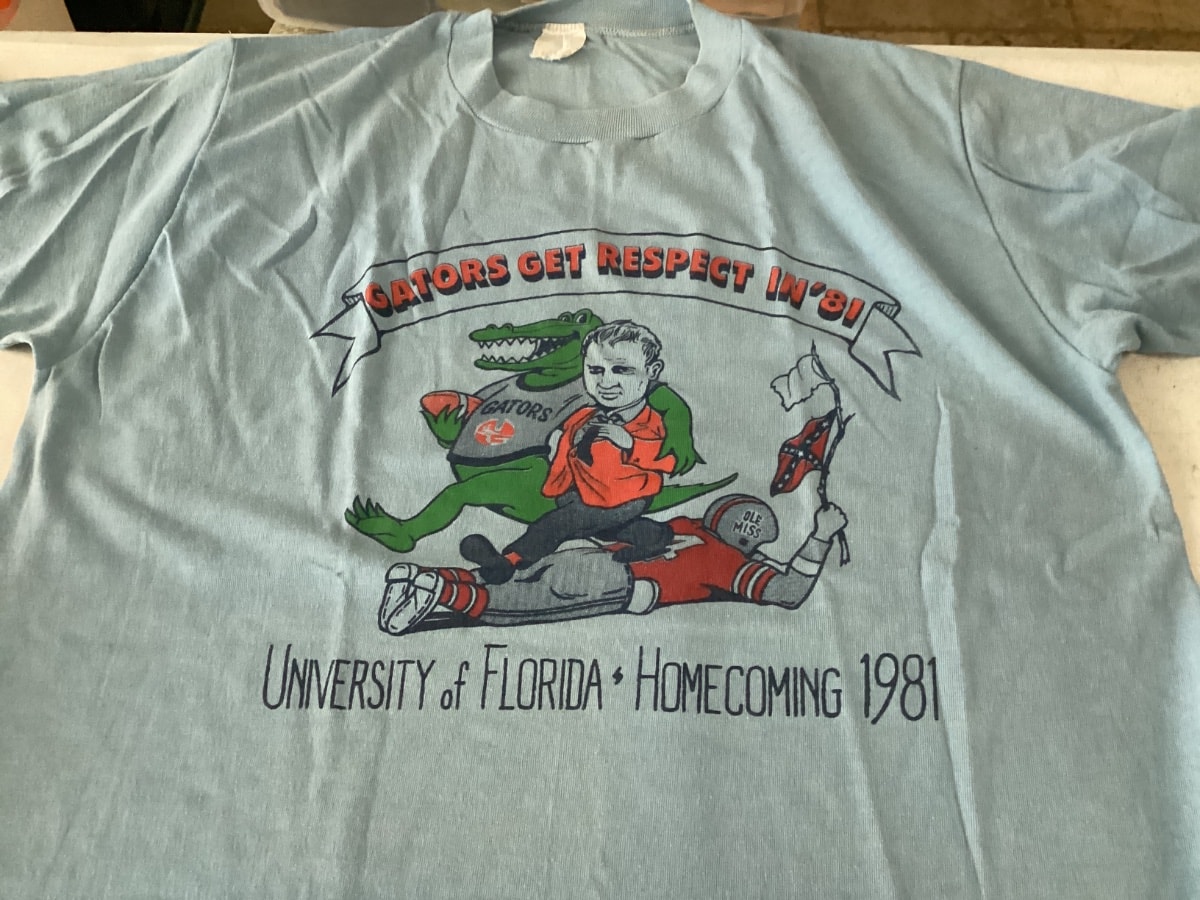 A classic 'paper-thin' 50/50 blend collegiate tee commemorating the 1981 Florida Gators Homecoming game against Ole Miss.
