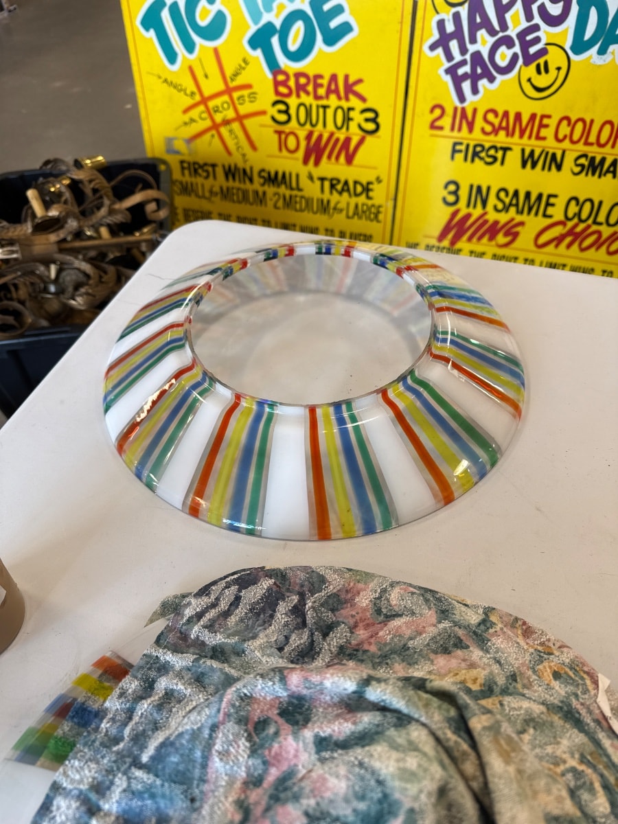 The glass appears vibrant with no visible chips or 'flea bites' along the rim in the photos. The surface clarity looks good, though light scratches on the base from 'shelf wear' are expected and do not significantly hurt value. Excellent condition for its age commands the higher end of the estimate.