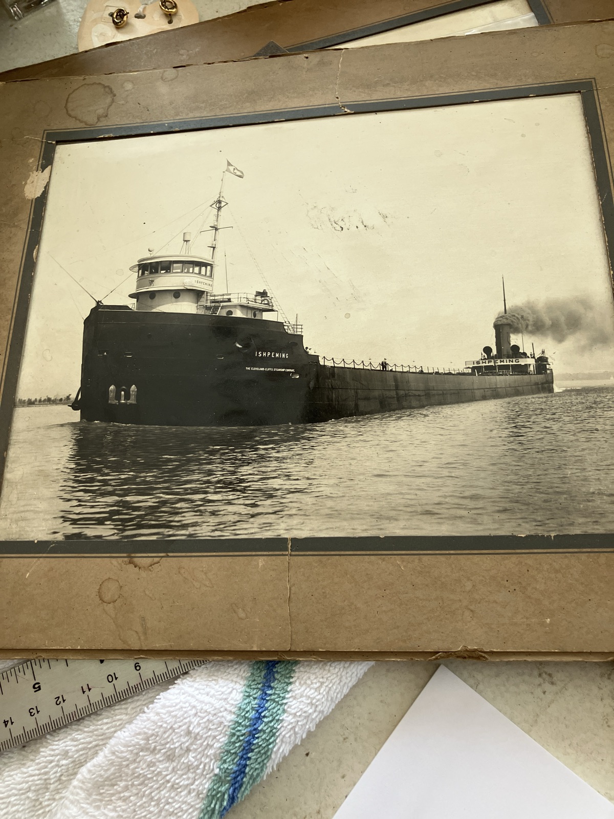 The photograph itself remains remarkably sharp, though it shows some age-related silvering and minor surface scuffs. Value is driven by the specific ship's popularity among maritime historians and the rarity of large-format original prints compared to mass-produced postcards.