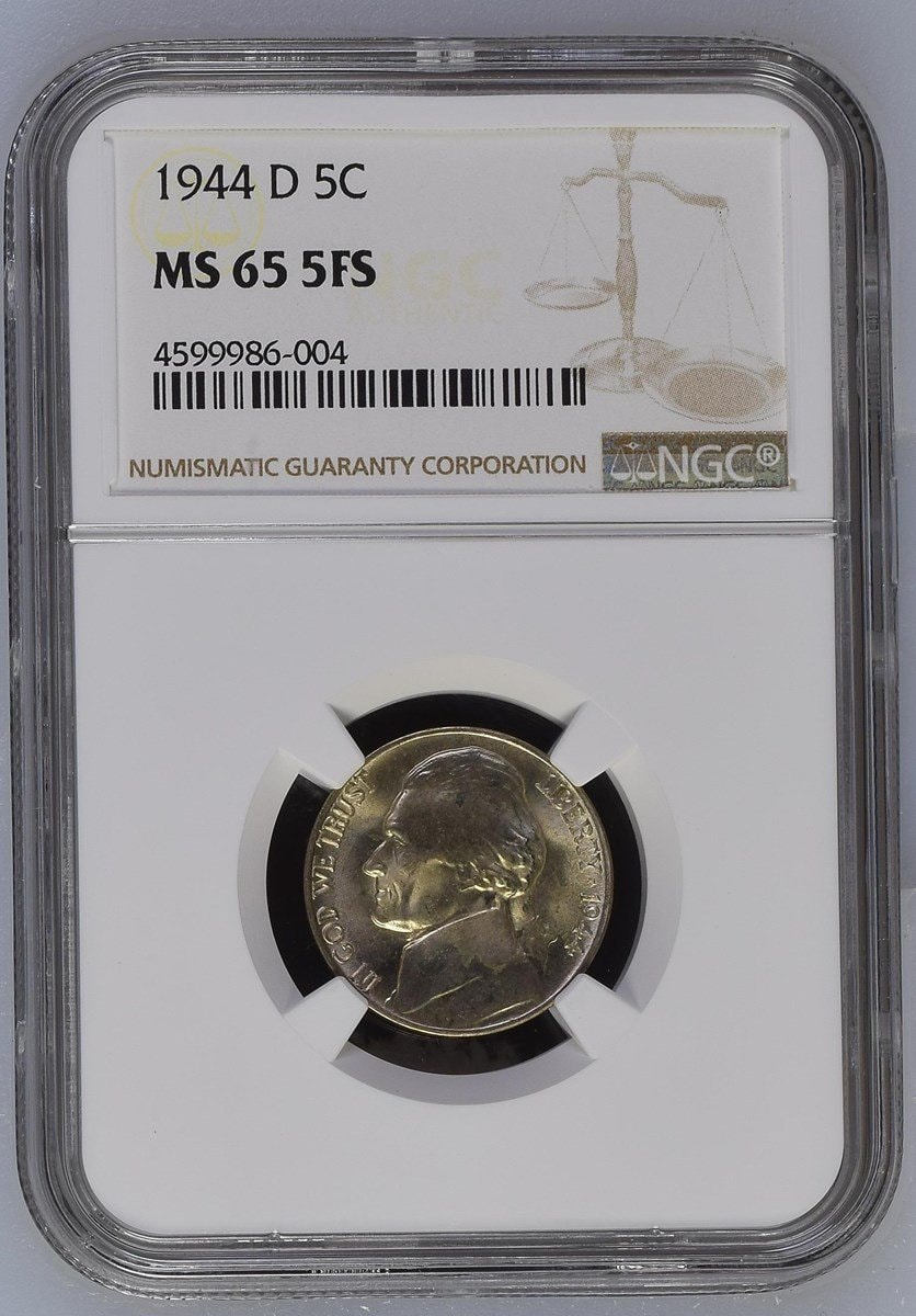 Professionally graded MS 65 by NGC, this coin is in excellent condition with vibrant luster and very few distracting marks. The '5FS' designation confirms that the most delicate part of the design is fully realized. The slab protects it from the environmental toning that often turns these silver-manganese coins dark over time.