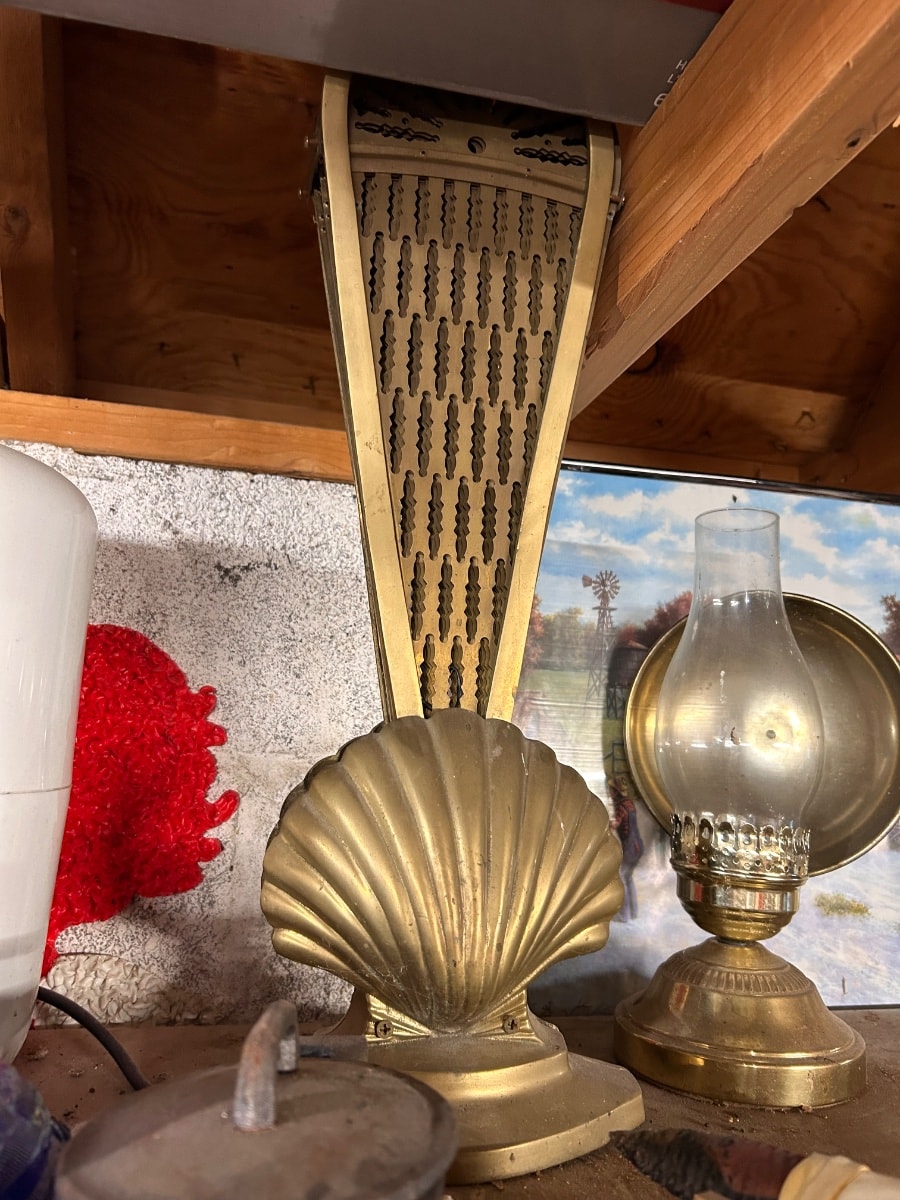 The brass shows a nice aged patina with some surface oxidation and dust, which is expected for a hearth item. Quick ID could not verify a named-artist market here, so this is intentionally priced like decorative/local-sale art.