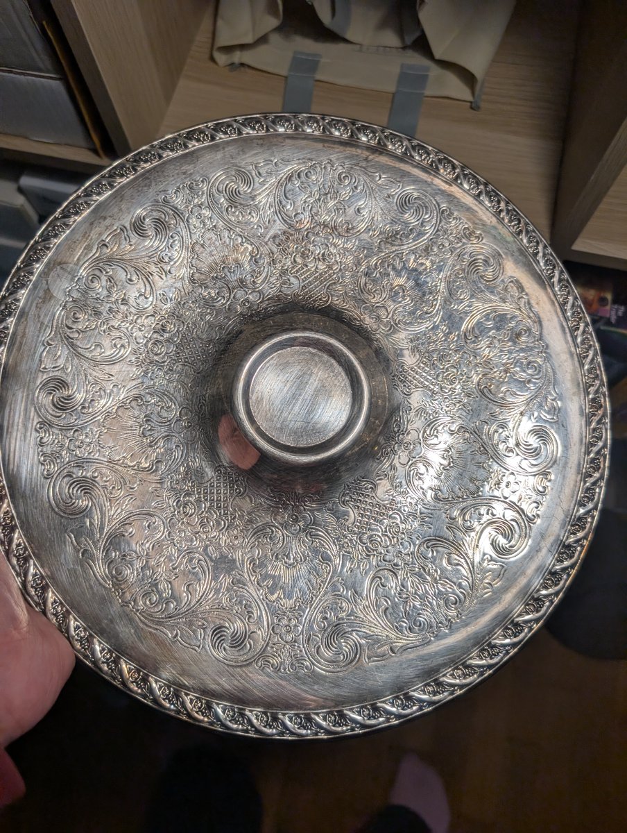 The photos show significant tarnish and some surface scratching consistent with age and use. Silverplate values are currently modest as modern lifestyles have shifted away from high-maintenance formal service.