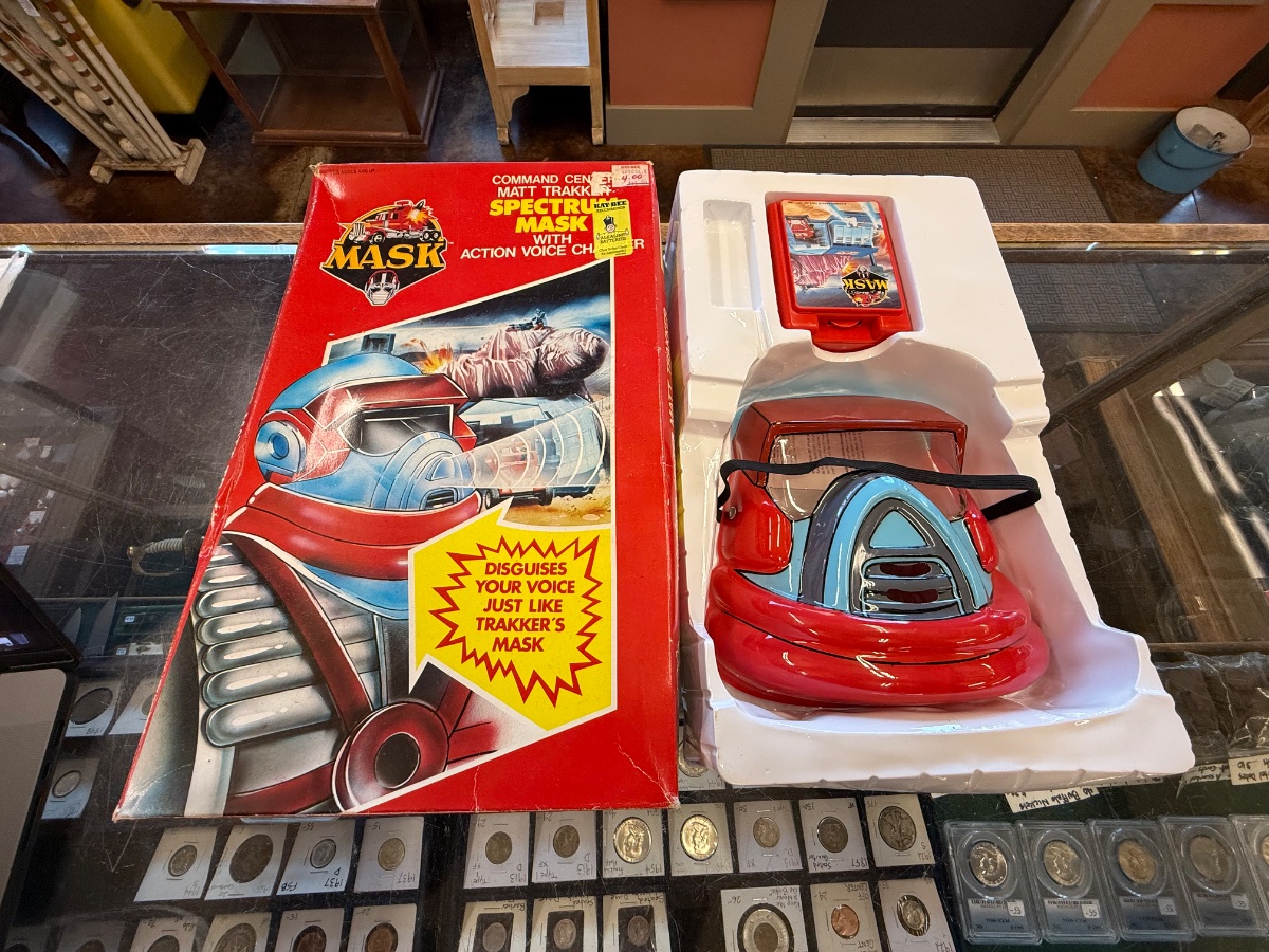 This is a remarkably preserved electronic 'Spectrum Mask' roleplay toy based on the hit 1980s animated series and toy line M.A.S.K. (Mobile Armored Strike Kommand).