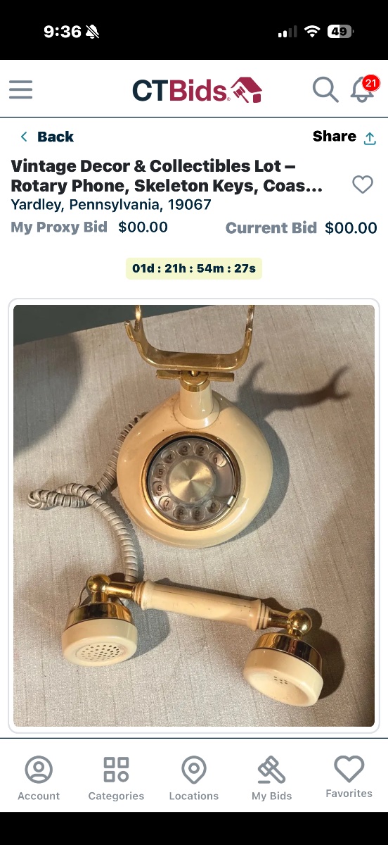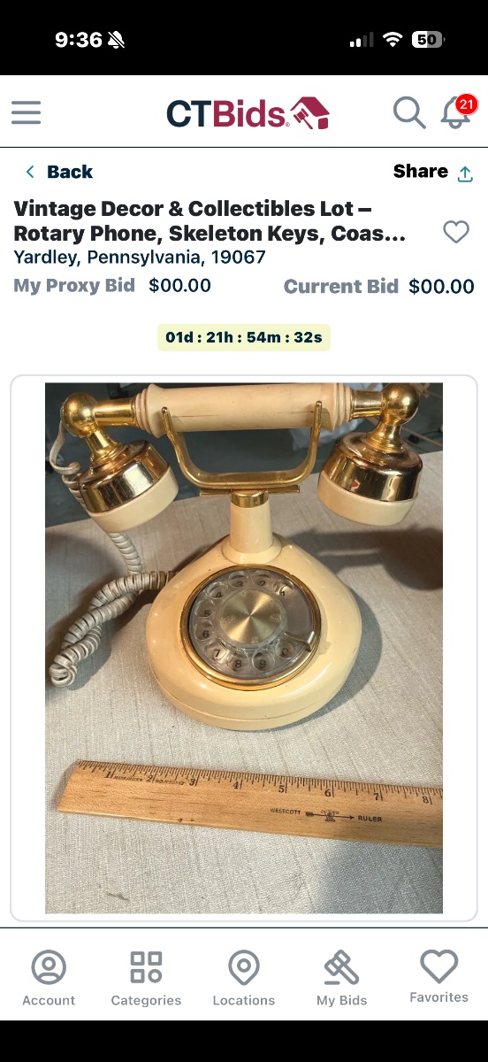 The phone shows visible signs of age, including yellowing of the plastic and some pitting on the gold-tone finish. Value is driven by the 'Hollywood Regency' aesthetic which is currently popular in interior design.