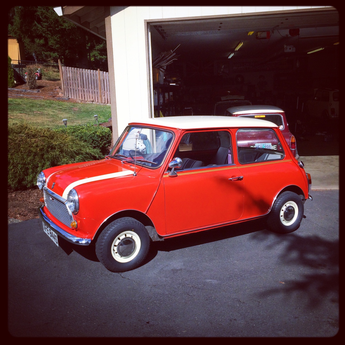 The car appears to be in exceptional cosmetic condition with vibrant paint and clean trim. Values for classic Minis have surged as they become increasingly rare in rust-free condition.