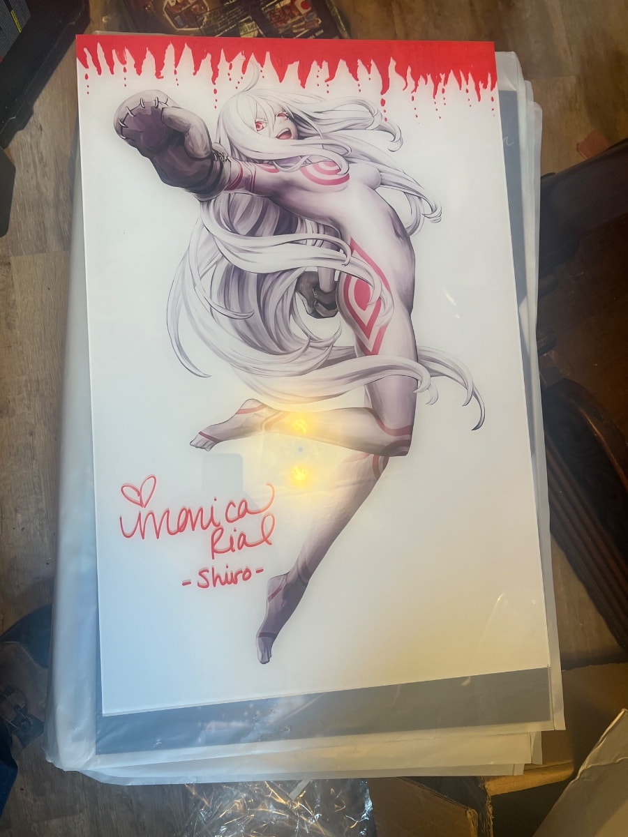 A high-gloss, large-format acrylic wall piece featuring Shiro, the enigmatic protagonist of the dark fantasy anime 'Deadman Wonderland.'