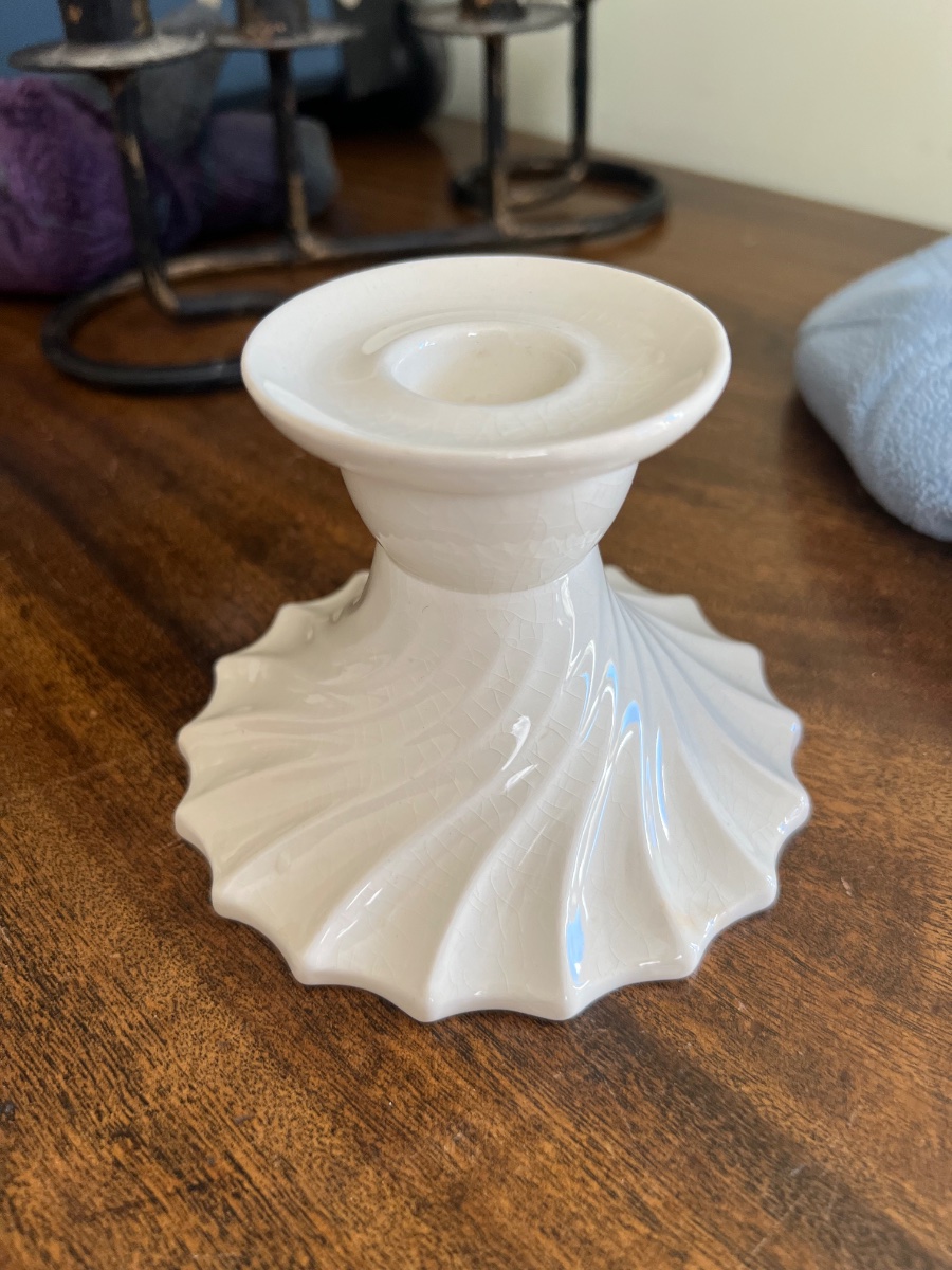 A pair of elegant creamware candlesticks featuring a dynamic spiral-fluted base and a classic trumpet rim.