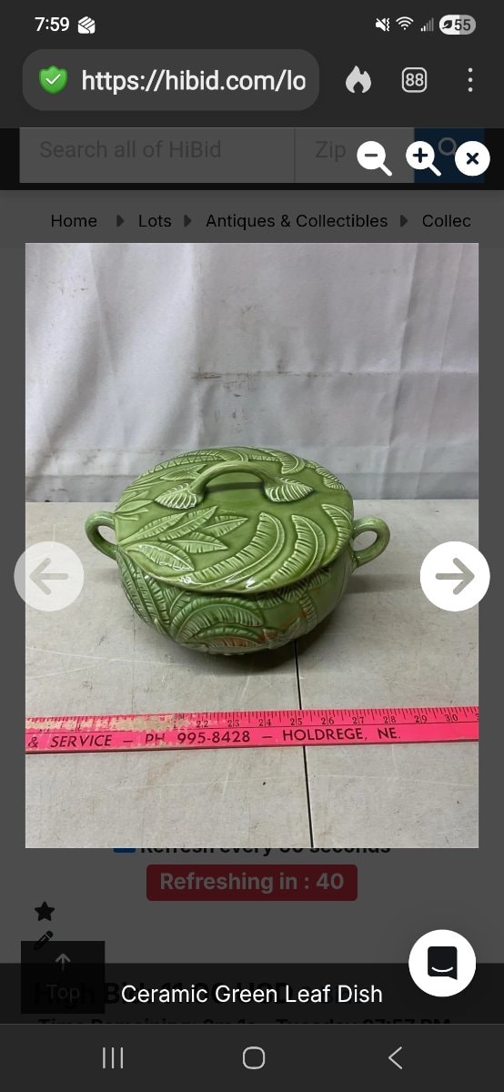 The piece appears to be in good vintage condition with the lid intact. Value for mid-century tropical ceramics is driven by the presence of the original lid and the vibrancy of the glaze.