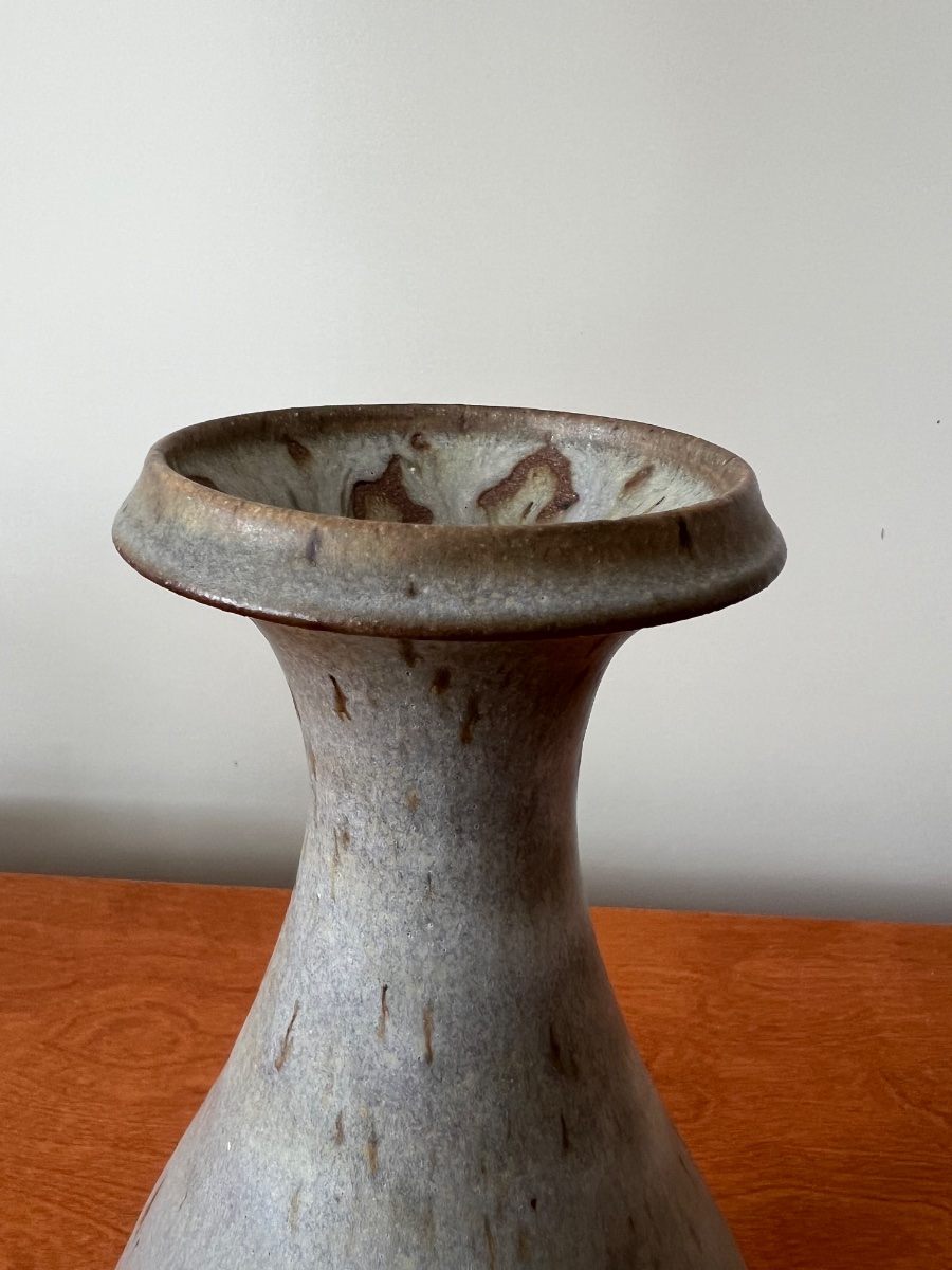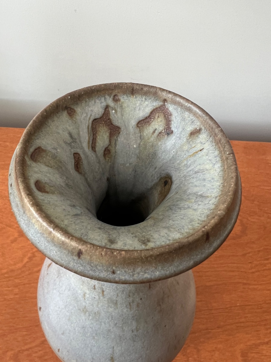 The vase appears to be in very good vintage condition with no visible cracks or large chips. Unsigned studio pottery is valued primarily on its aesthetic appeal and technical execution; if a signature from a known master were identified, the value could increase…