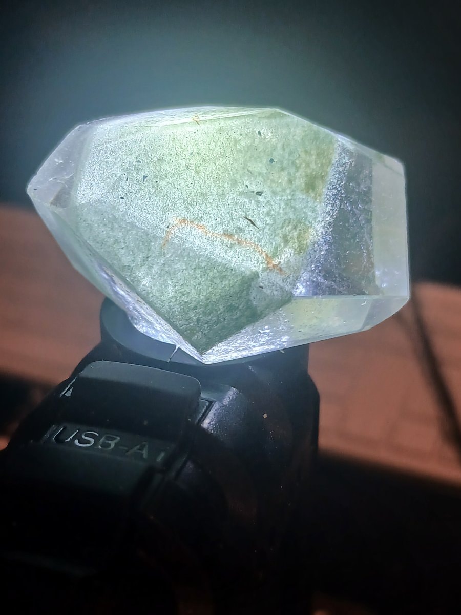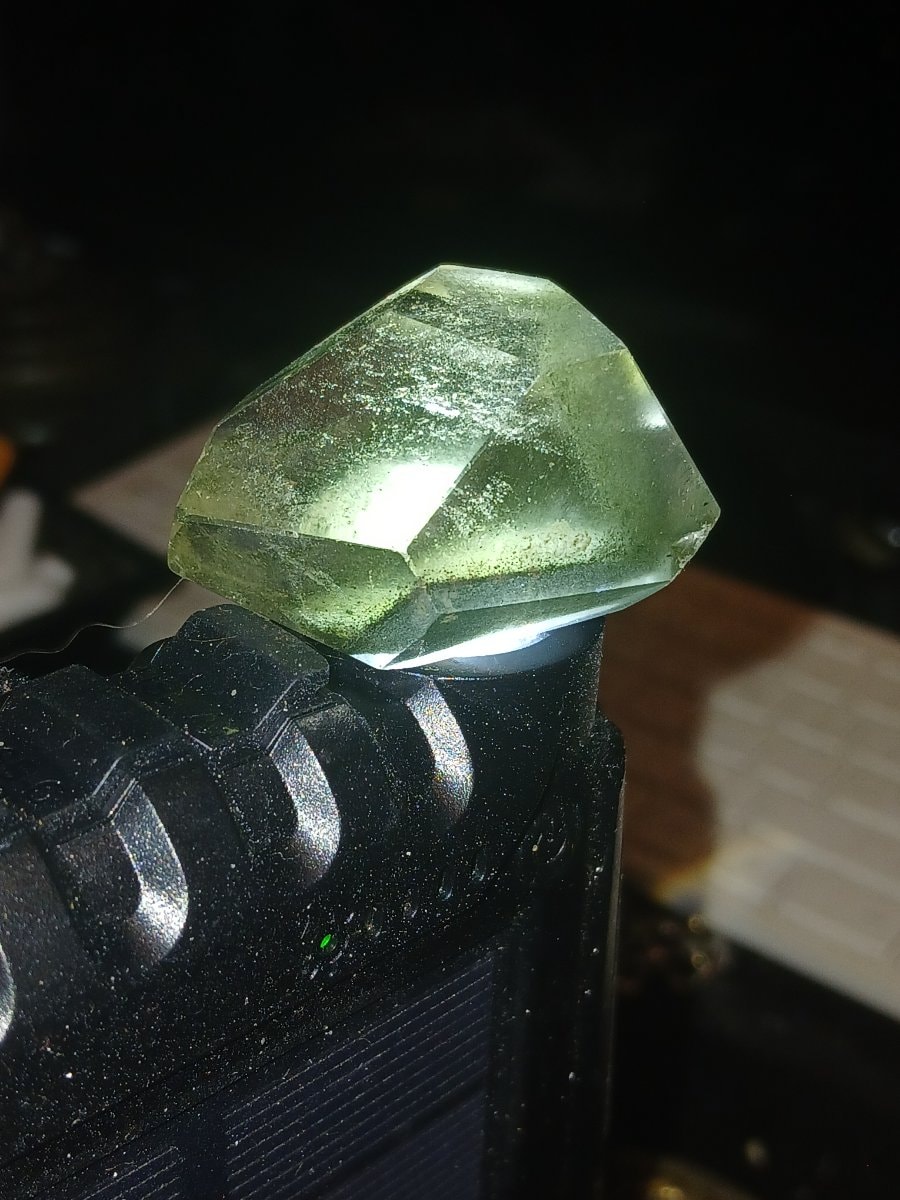The piece shows some surface abrasions and 'flea bites' (tiny chips) along the sharpest facet edges, which is typical for heavy glass of this age. These minor imperfections are consistent with use as a paperweight and do not significantly detract from its decorative 'fire'.